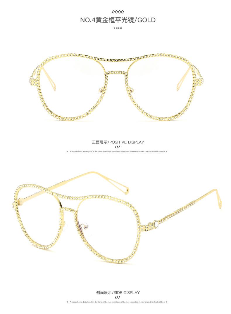 Nuevas gafas de protección ocular sin graduación, gafas de mujer con montura de diamante incrustado, gafas artísticas que se pueden equipar con gafas de miopía al por mayor