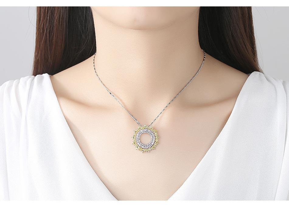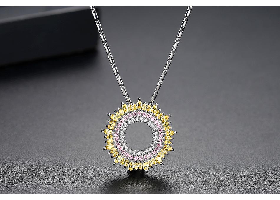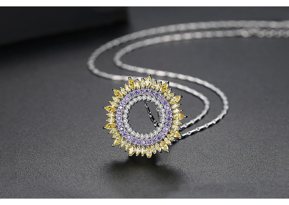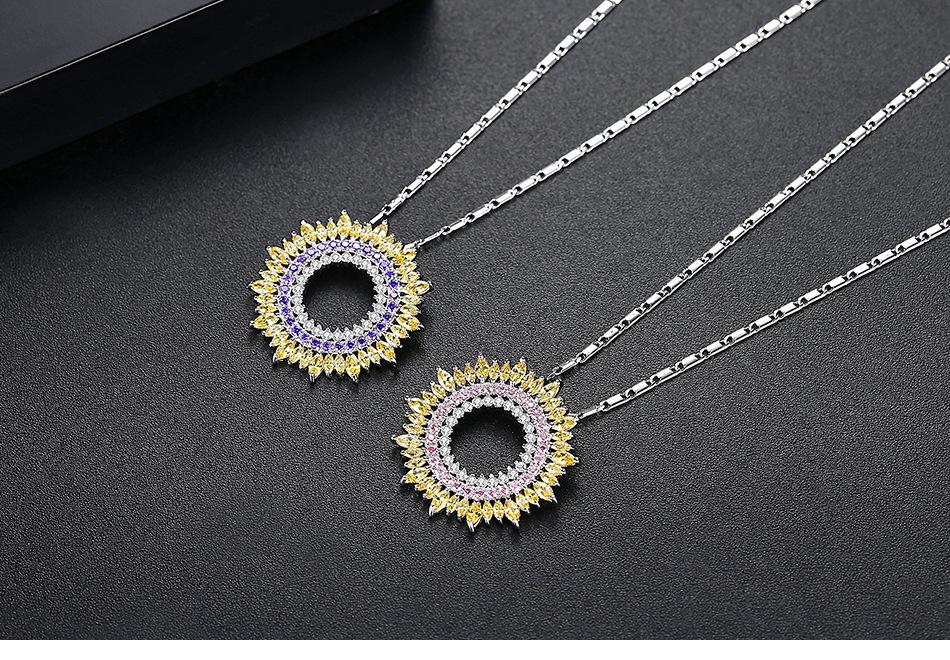 Collar Jinse con colgante de circonita en cobre europeo y americano, collar con forma de disco de color europeo y americano, joyería popular para mujer al por mayor