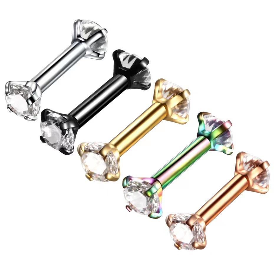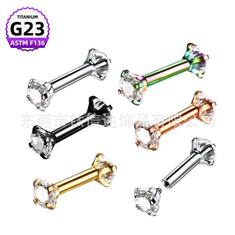 F136, nueva garra de titanio, circonio redondo, circonio, hueso de oreja, accesorios para uñas con incrustaciones de circonio 5A, clavo para labio, G23, aleación de titanio, piercing para oreja