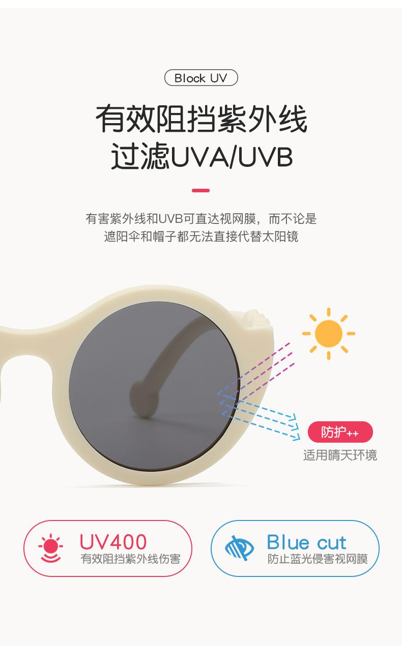 Gafas de sol cómodas para niños con montura redonda de fábrica, venta al por mayor, gafas de bebé de dibujos animados, gafas de sol polarizadas con protección UV para bebés