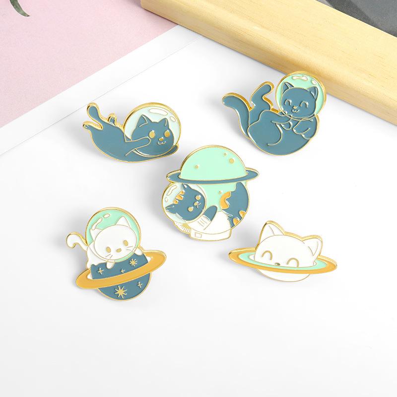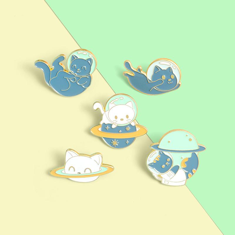 Broche de aleación con pintura en forma de gato espacial con insignia de gato de dibujos animados lindo de comercio exterior