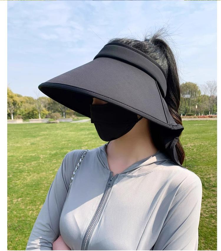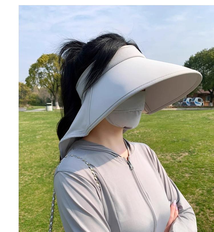 2025 Nuevo Protector de Cuello Superior Vacío Seda de Hielo Ala Ancha Sombrero de Sol para Mujer Protección Solar Protección UV Verano Sombrero de Sol para Exterior