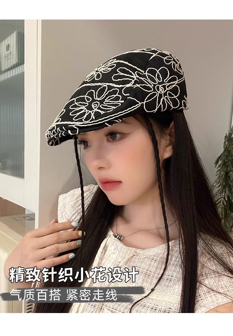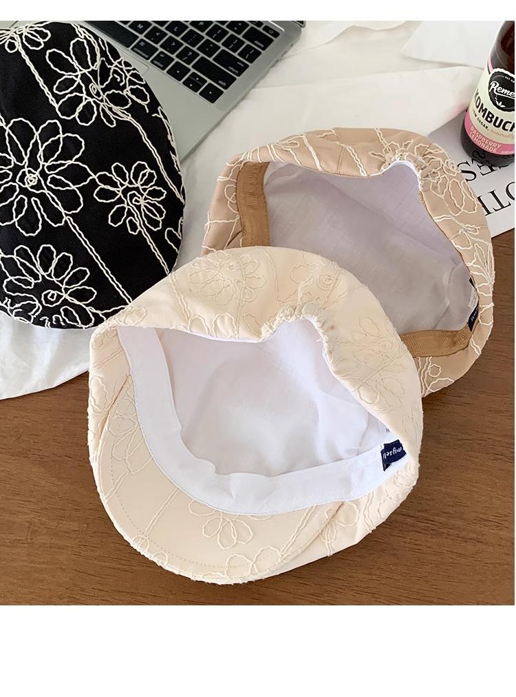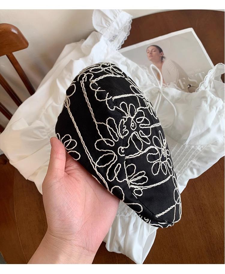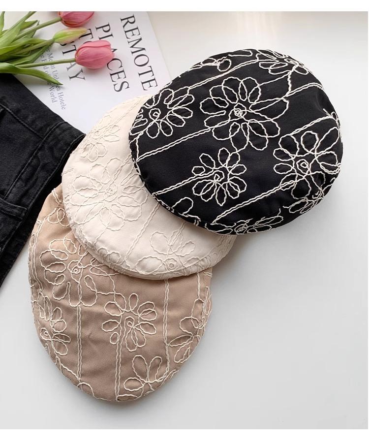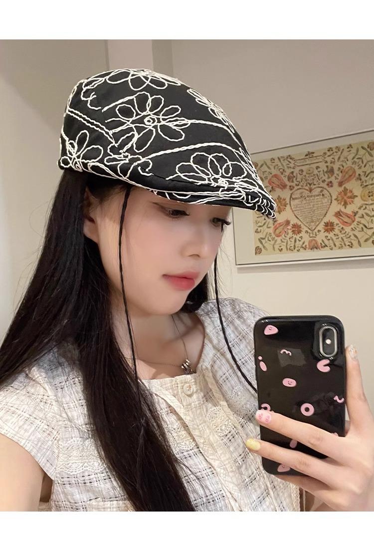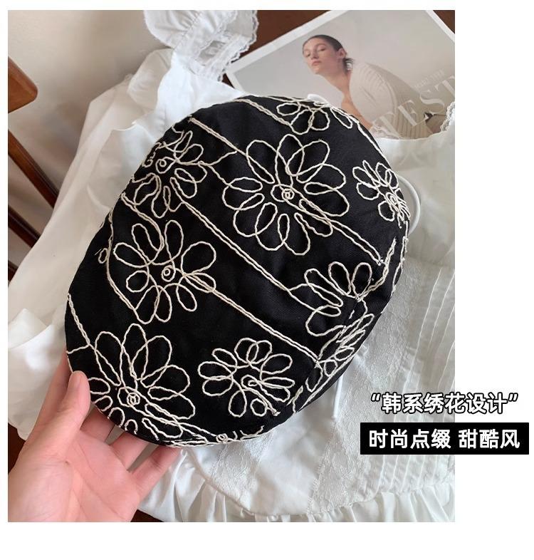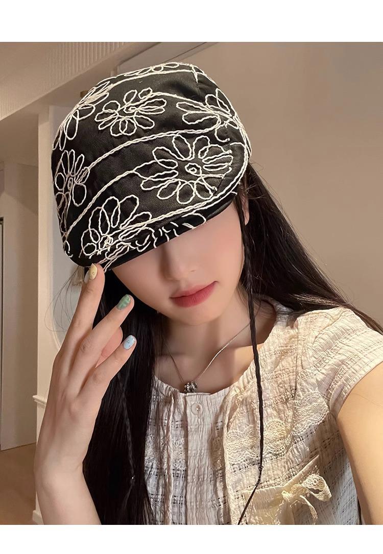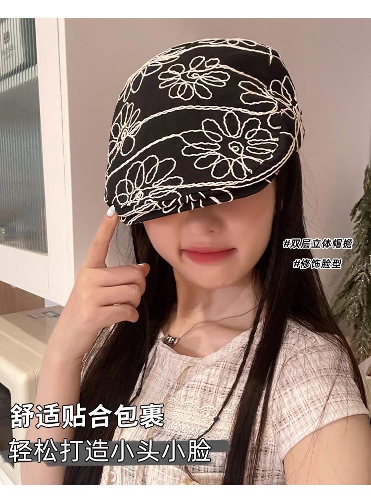Boina de estilo coreano con bordado de flores retro para mujer, de verano, con diseño de nicho, con cara visible, estilo pintor pequeño.