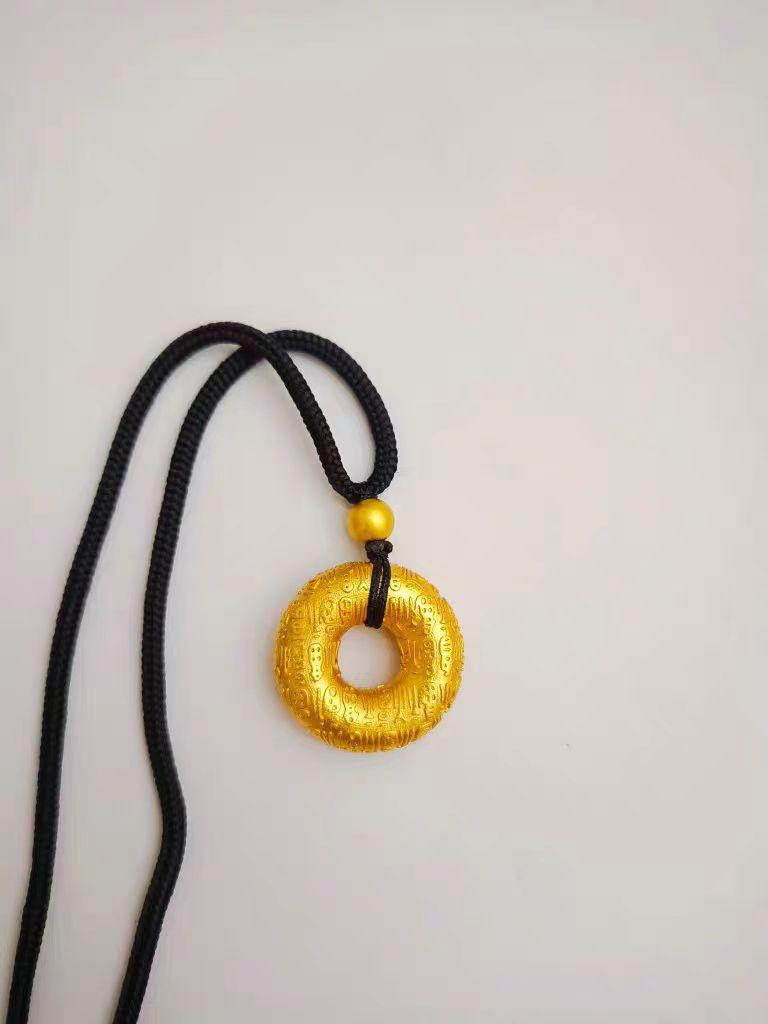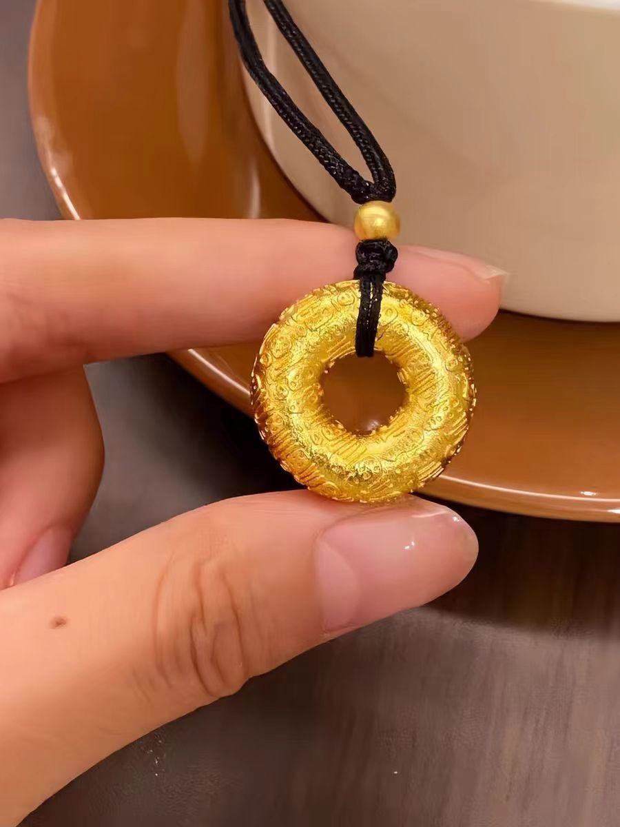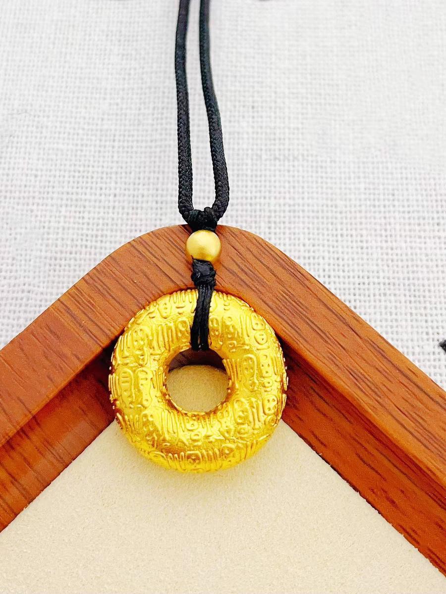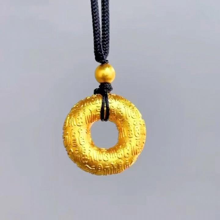 Transmisión en vivo del mismo colgante de círculo concéntrico con carácter Fu de color dorado con hebilla Ping An de Baifu, colgante de hebilla Ping An con método antiguo chapado en oro