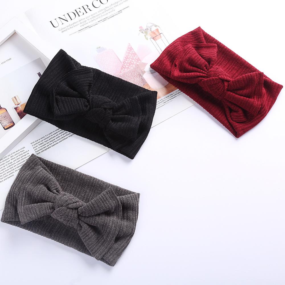 Accesorios para el cabello nuevos europeos y americanos para niños Banda para el cabello para bebé con lazo de lana de punto de hoyo de doble capa Banda para el cabello para bebé Cabello suelto femenino