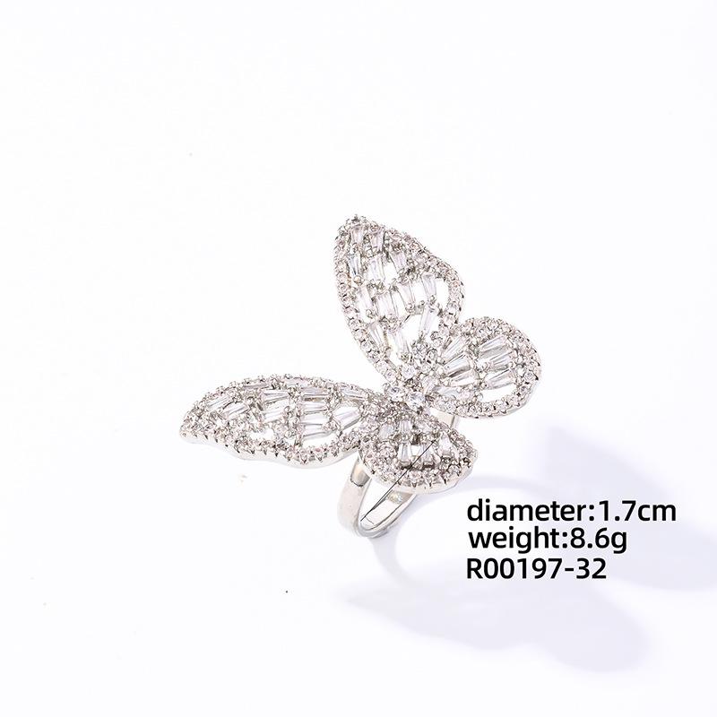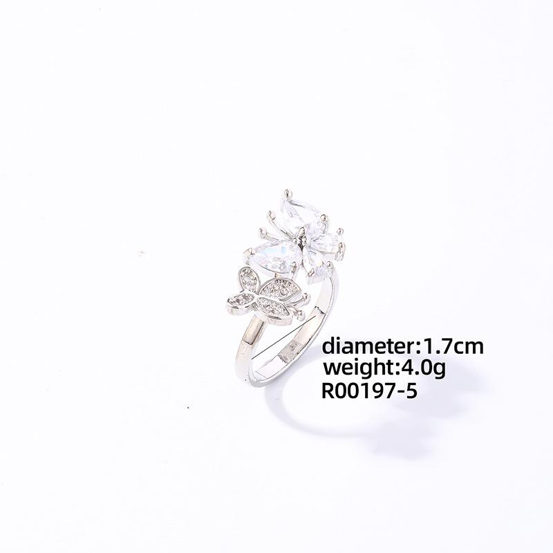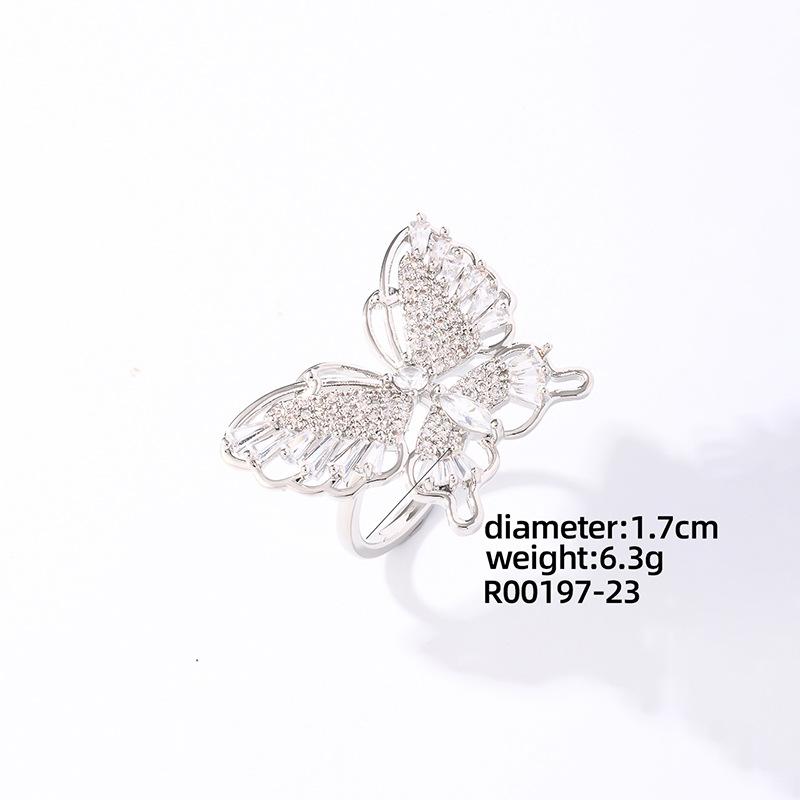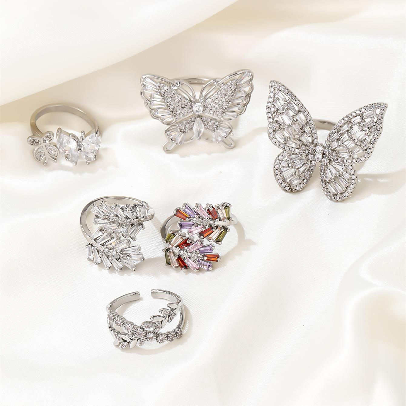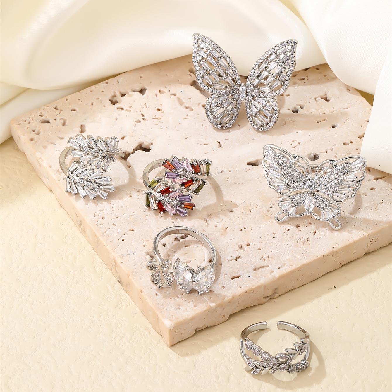Anillo abierto elegante y dulce de mariposa chapado en platino de alta gama con microincrustaciones de circonita de moda de lujo ligero para la mano