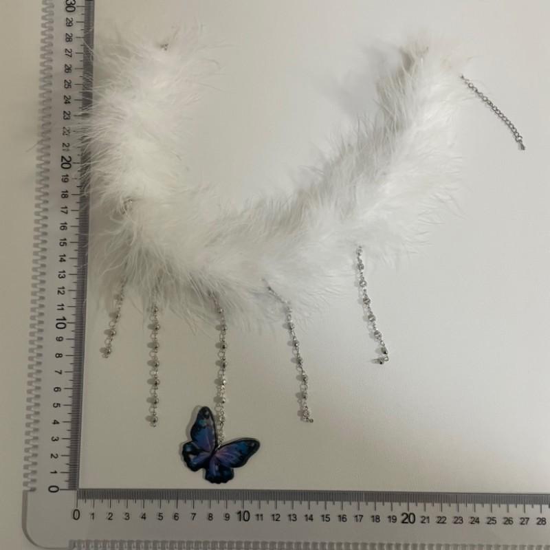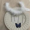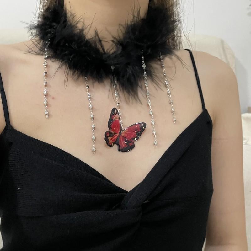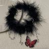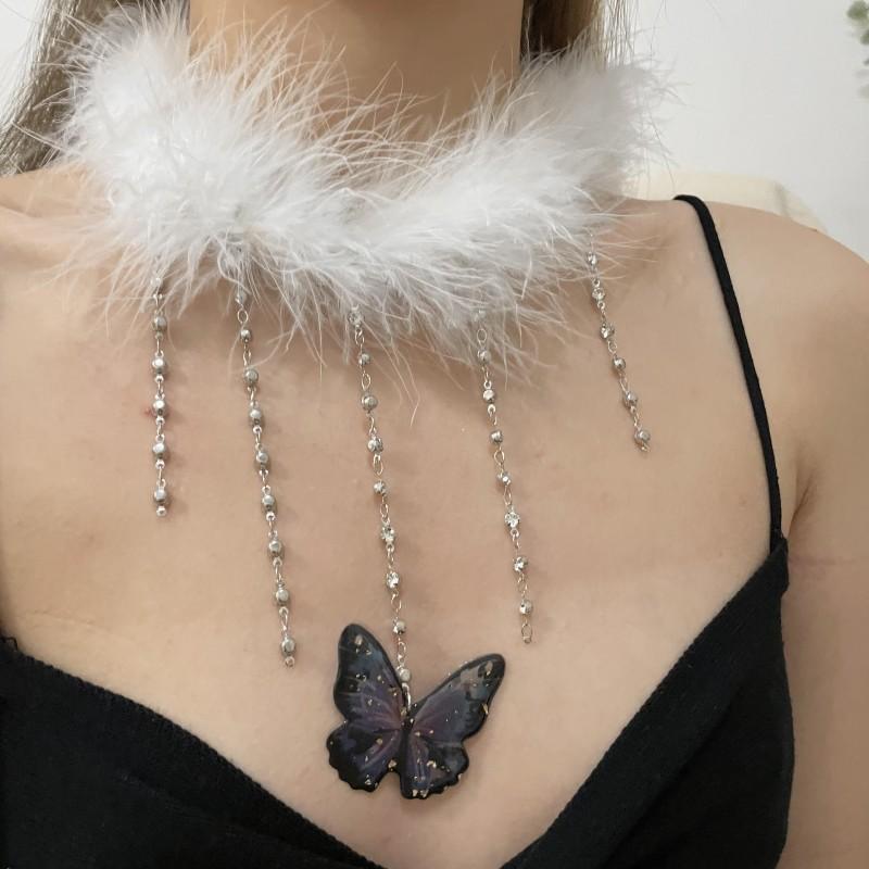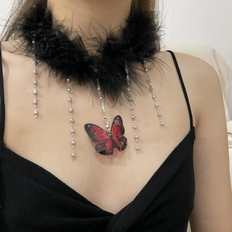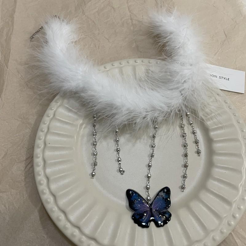 Black plush tassel butterfly necklace, White plush tassel butterfly necklace