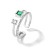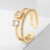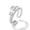 RAKOL Diseño Nicho Distintivo Geométrico Anillo Abierto de Doble Capa para Mujer Estilo Coreano Exquisito Lujo Ligero Micro-incrustado Anillo de Circonitas