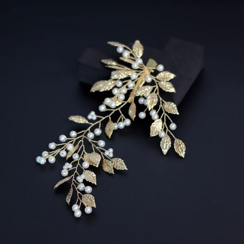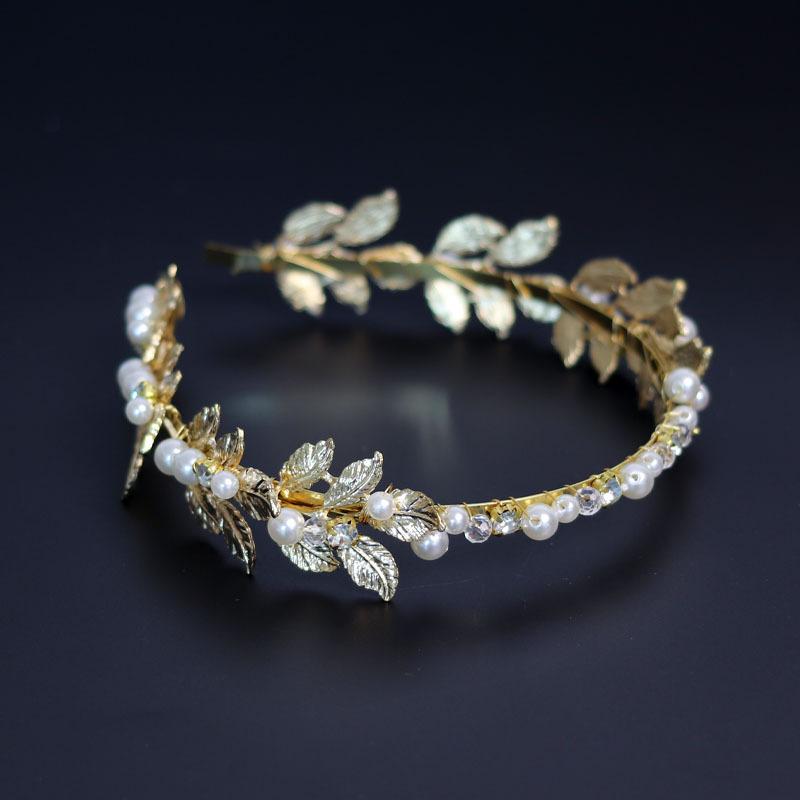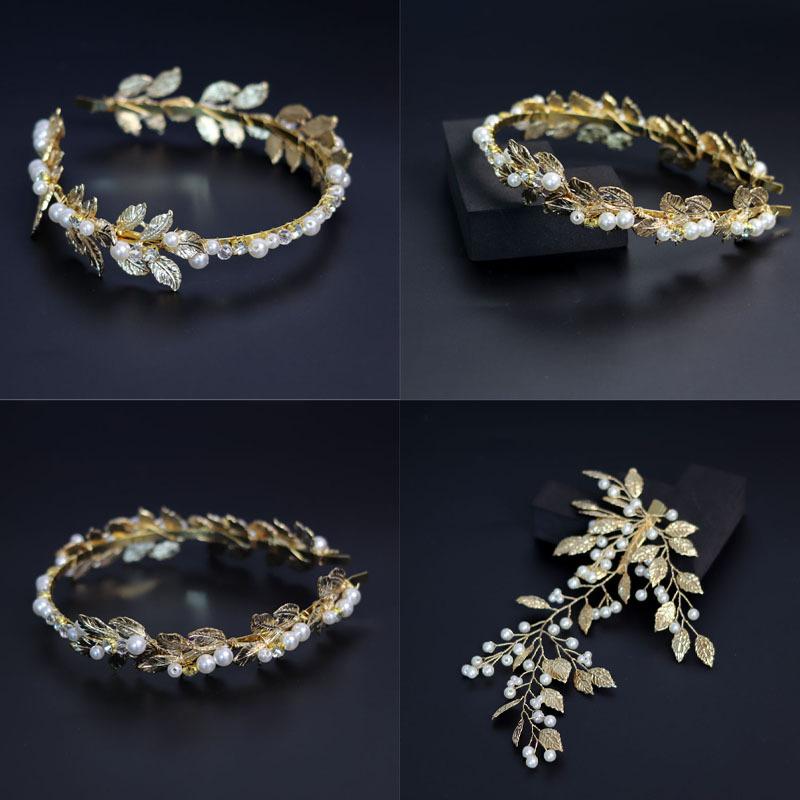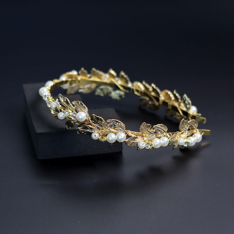 Alloy Leaf Hair Band, Rhinestone pearl headband, Alloy leaf hairpin, Rhinestone headband