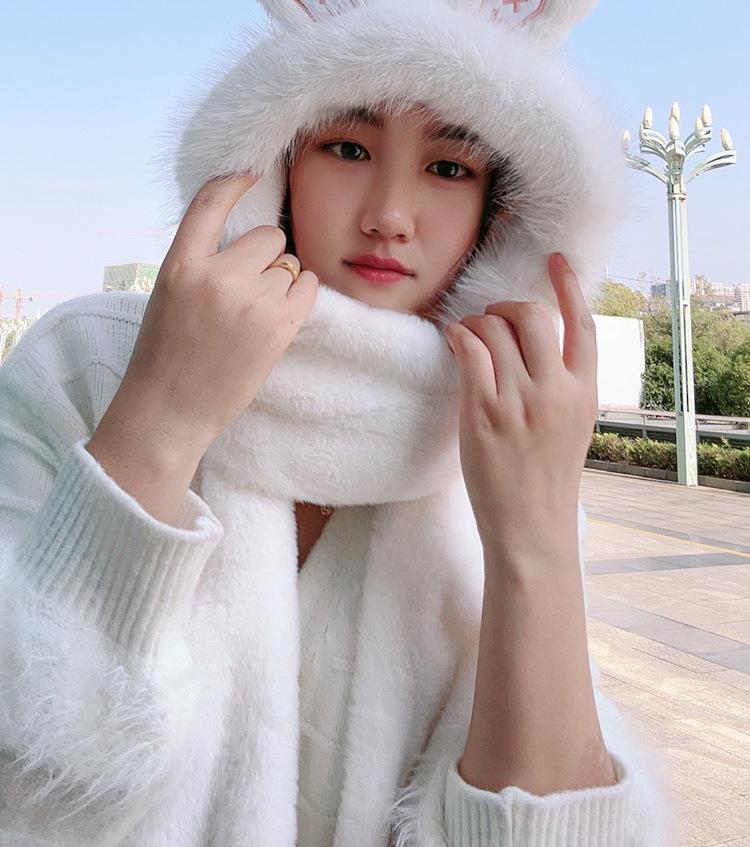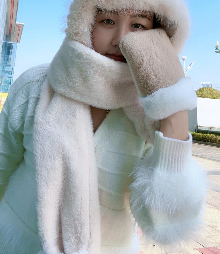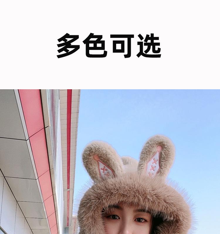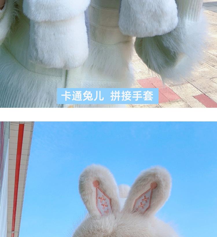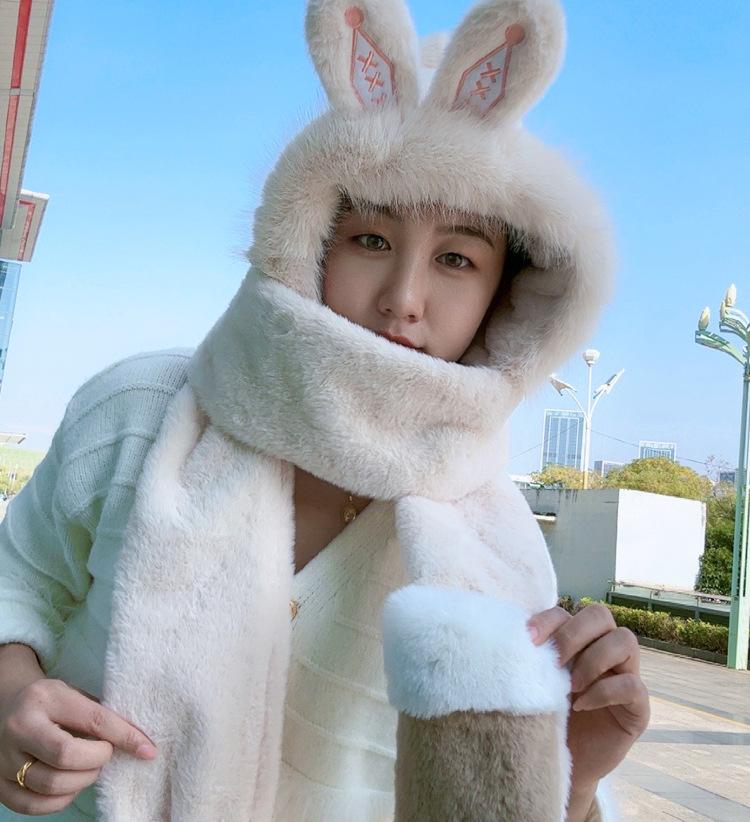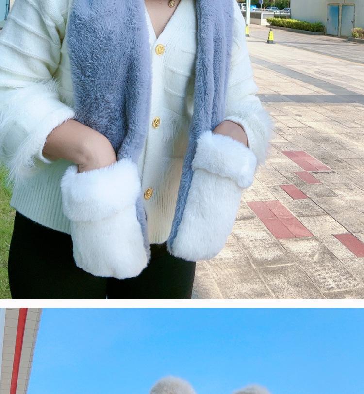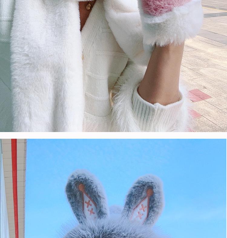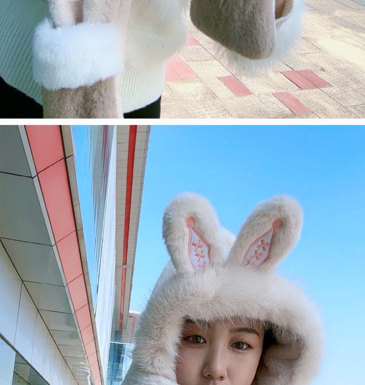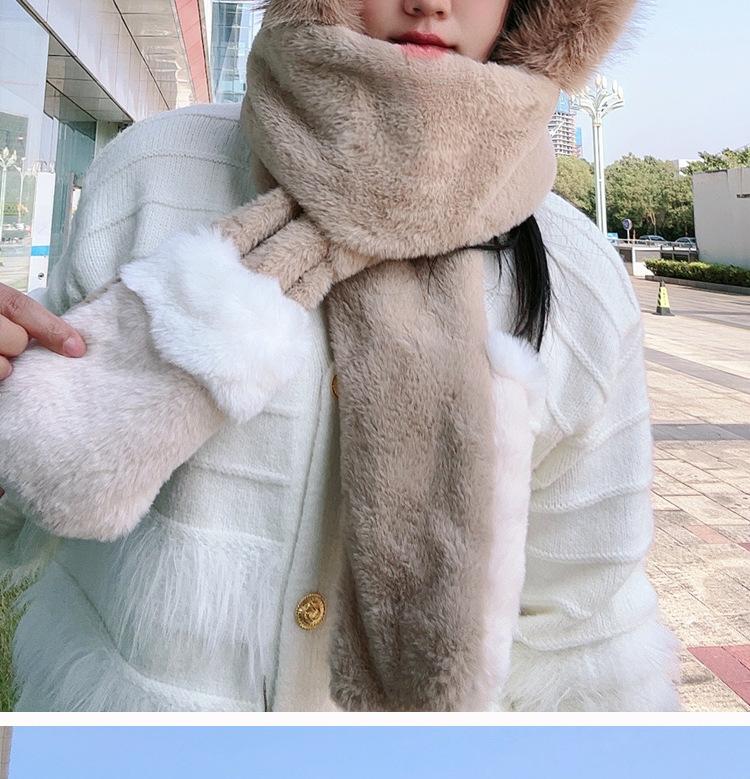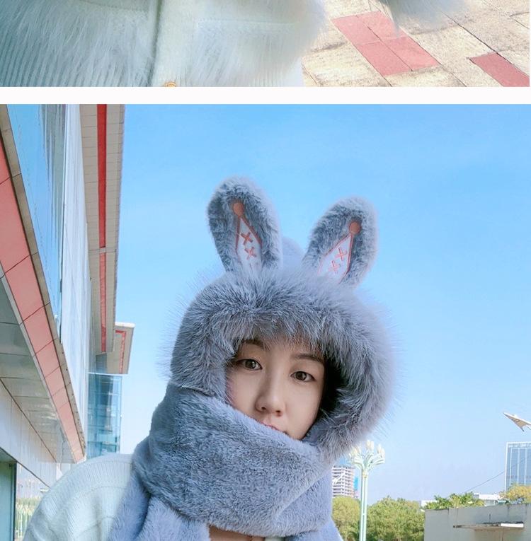 Invierno Felpa Espesado Sombrero Bufanda Guantes Conjunto de Tres Piezas Almacenamiento Cálido Lindo Conejo Cuello Capucha de Una Pieza