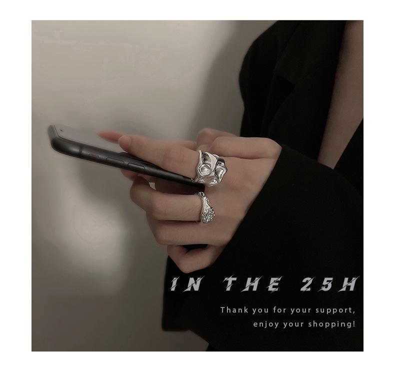 Anillo Geométrico Exagerado Distintivo de Plata S925 Europea y Americana para Mujer, Retro, Hip-Hop, Moda, Abultado, Irregular, Abierto