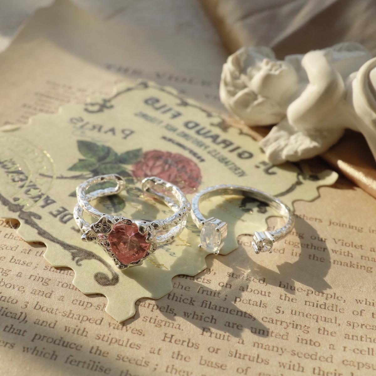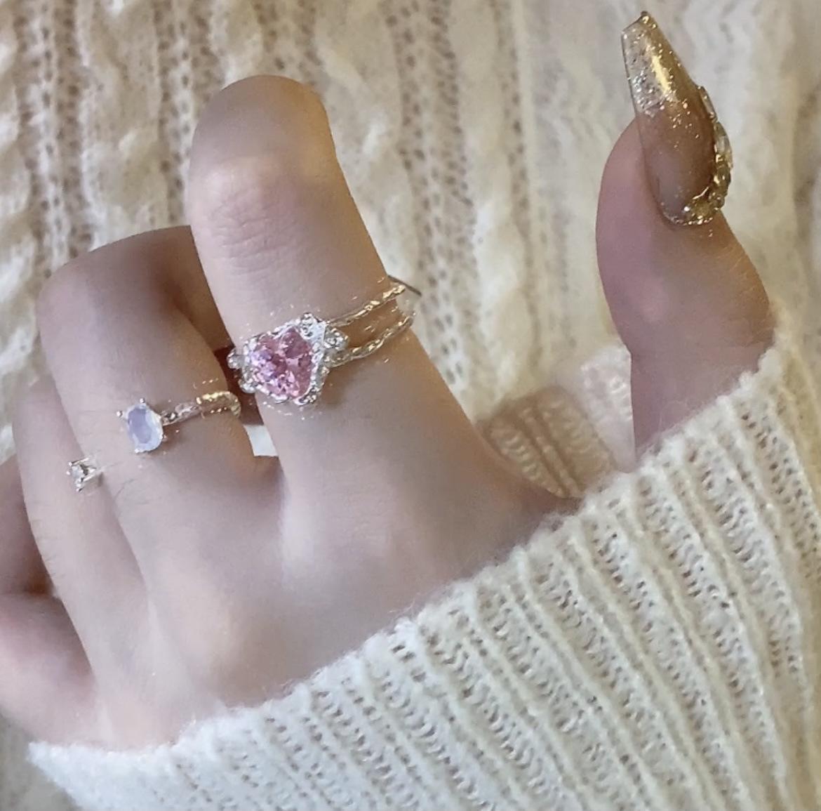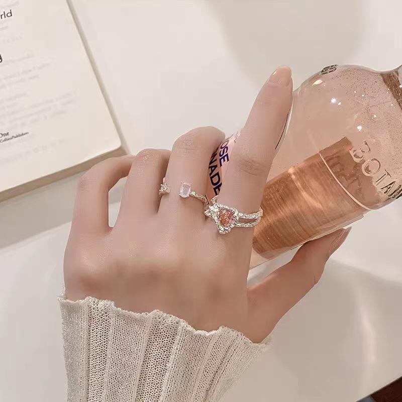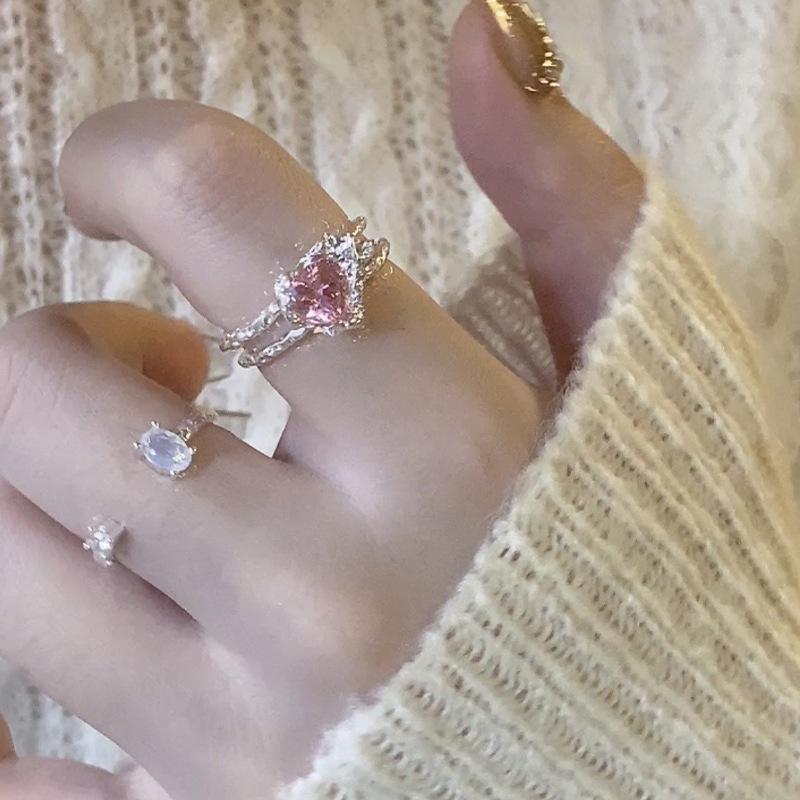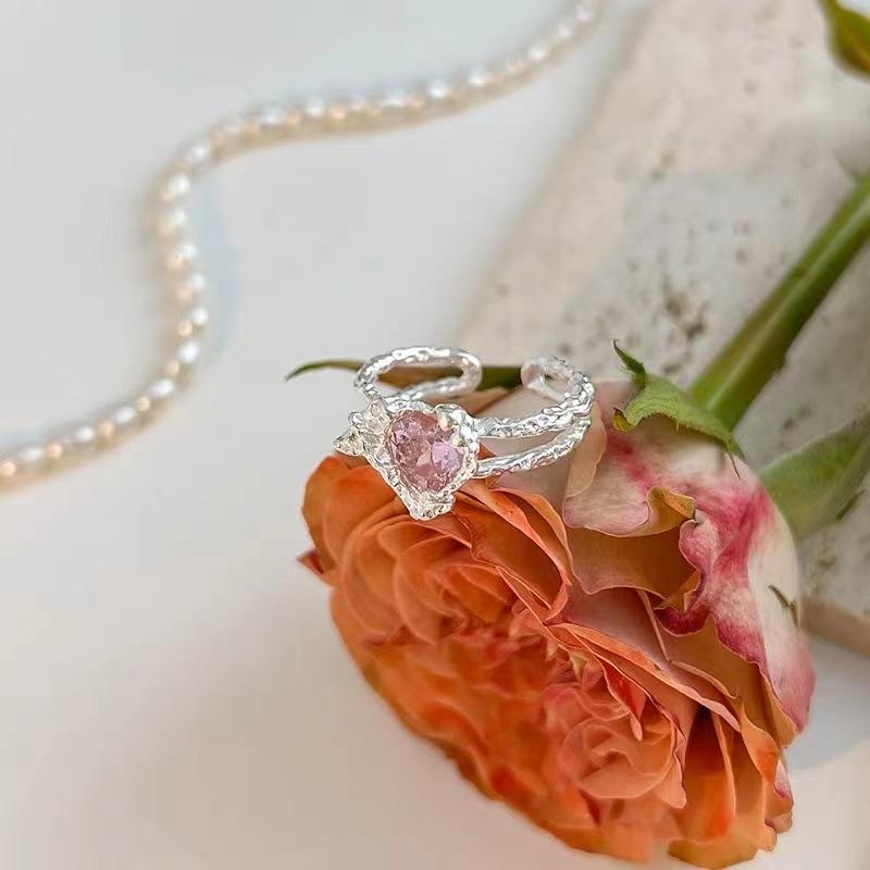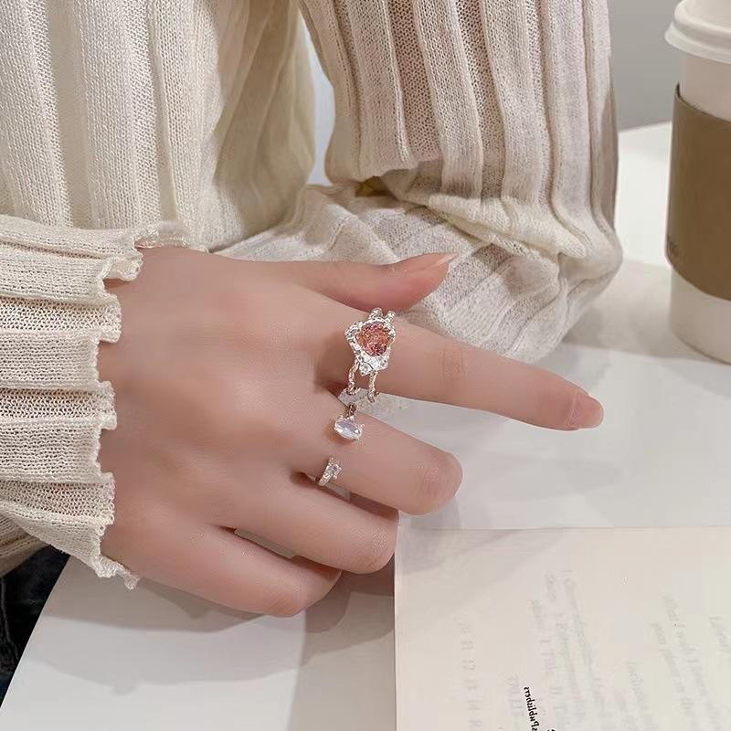 Anillo de diamante rosa amor Anillo ajustable irregular de alta gama de lujo ligero para mujer temperamento moderno gema anillo de novias