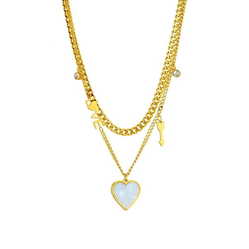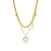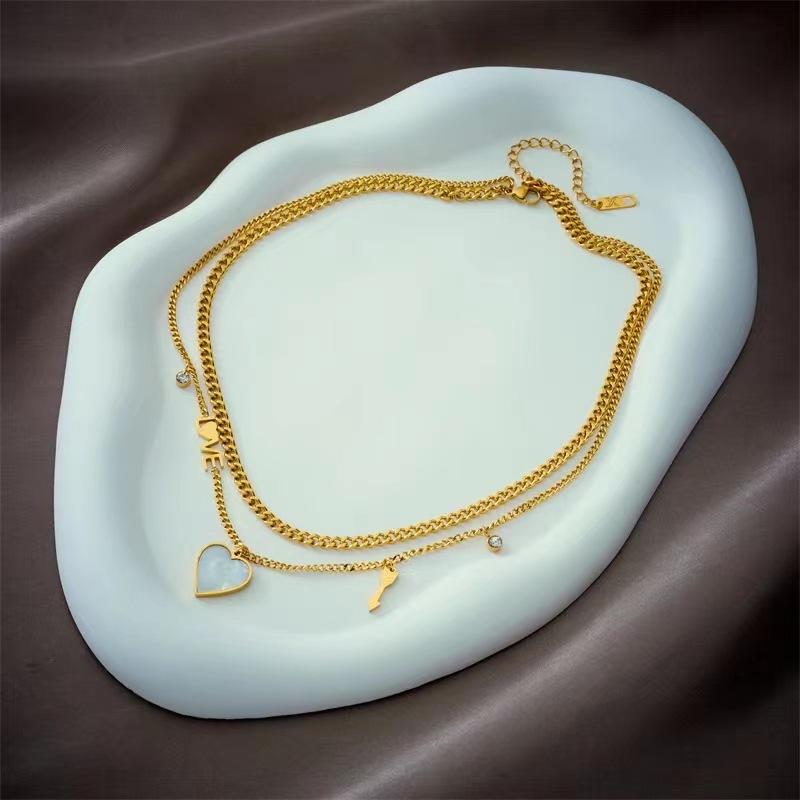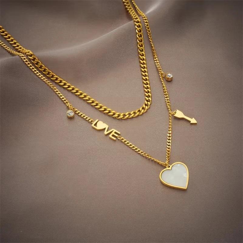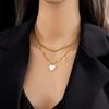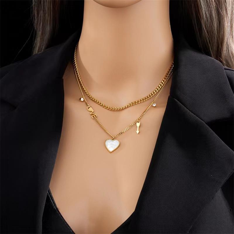 Collar de doble capa con diseño de acero de titanio y forma de corazón de melocotón, concha blanca europea y americana, combina con todo, estilo nicho.