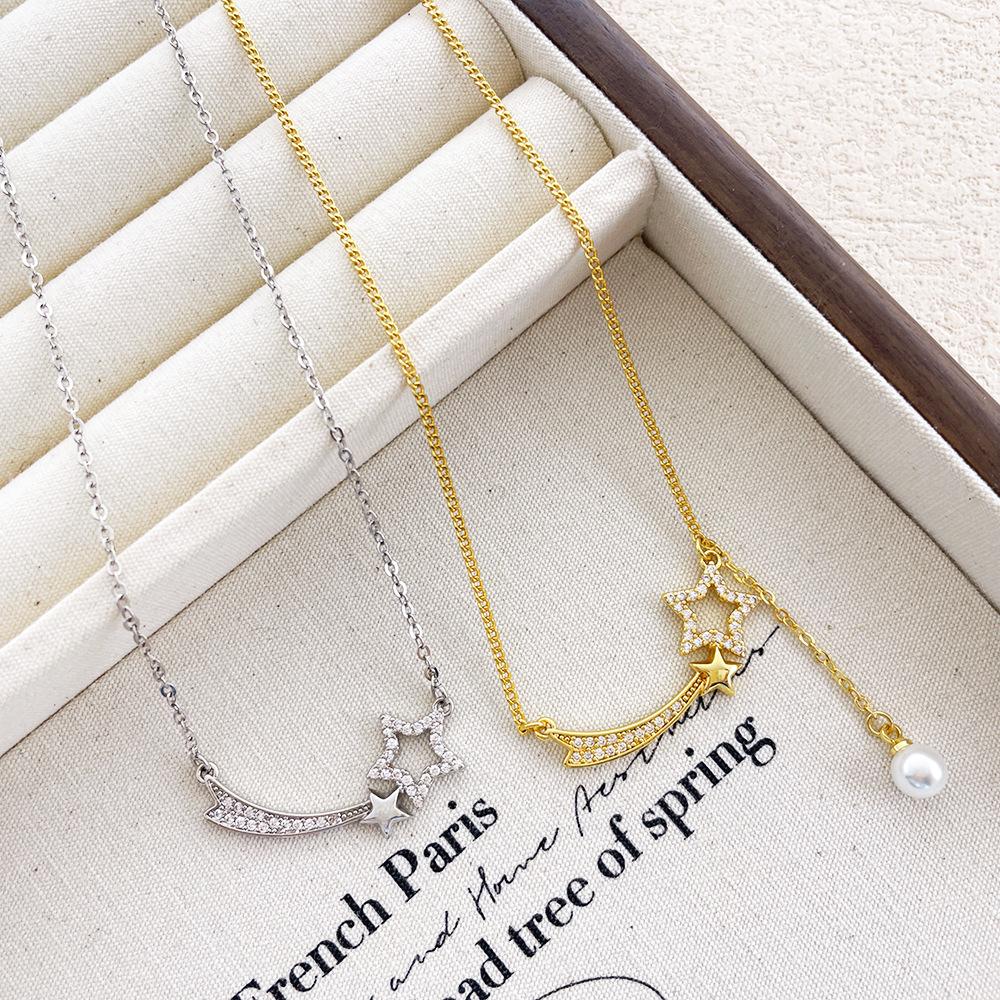 Collar coreano de nueva estrella de 18 quilates transfronterizo para mujer, lujo accesible de alta gama, cadena de clavícula de meteorito, joyería exquisita