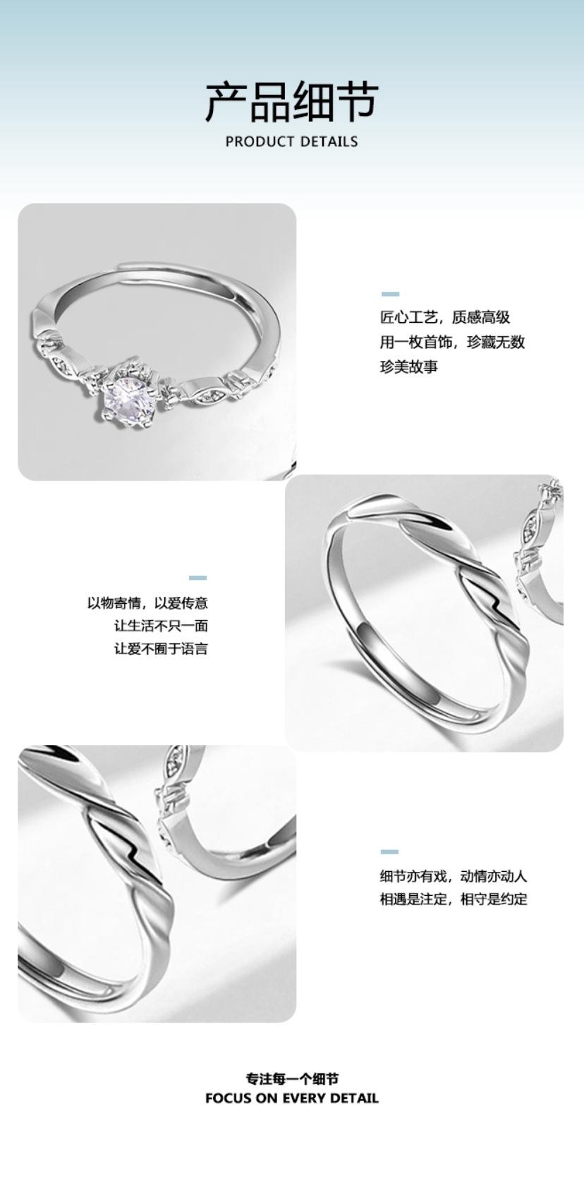 Anillo de pareja de plata esterlina S999 con diseño de estrella brillante y río, anillo de comida ins de alta calidad de Mobius, anillo abierto de circonita simple