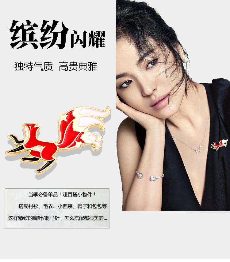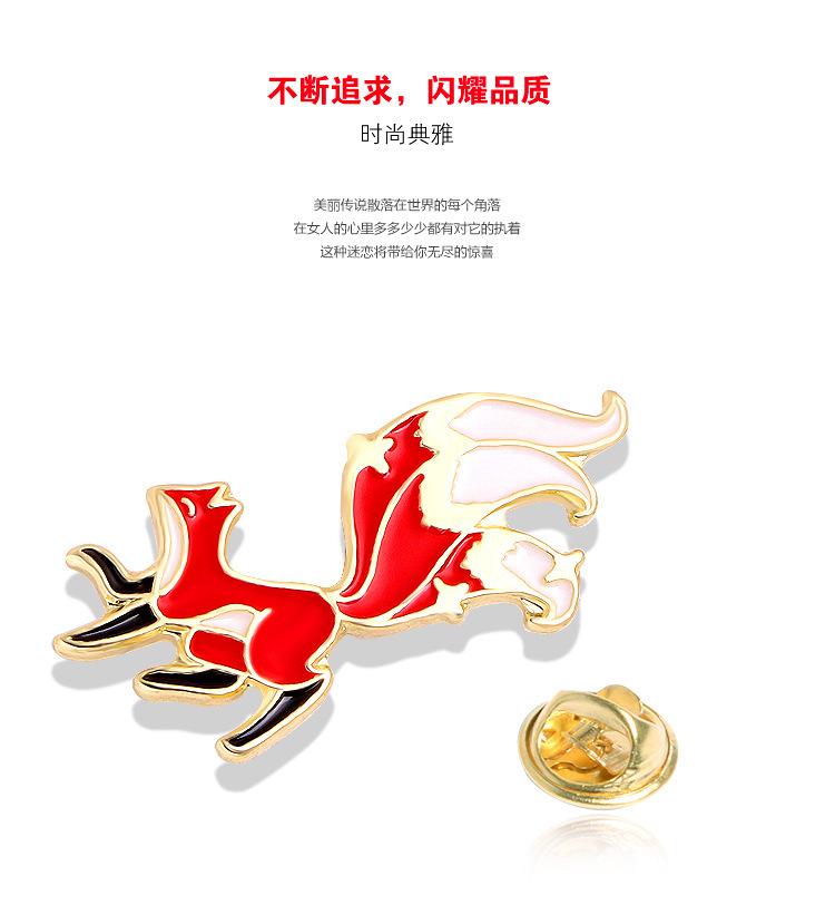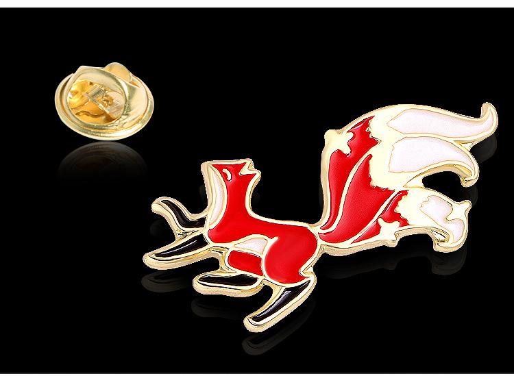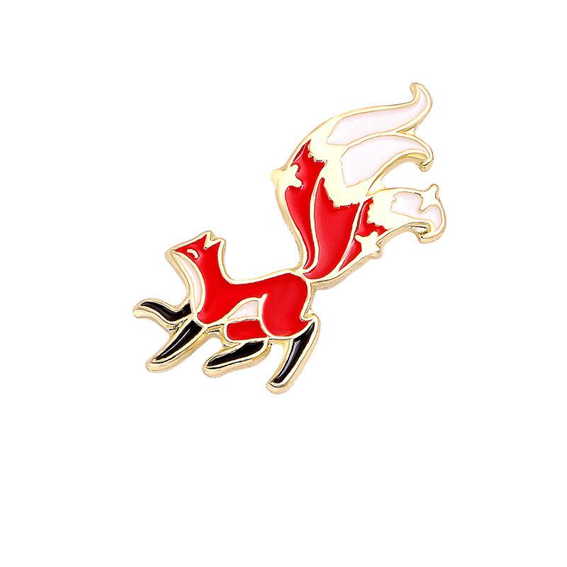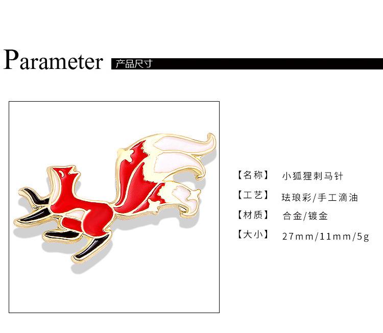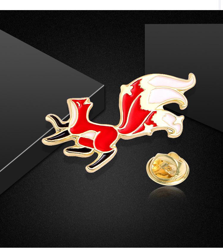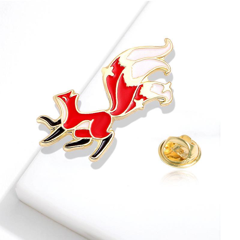 Broche de dibujos animados de zorro, camisa con gota de aceite, ramillete de aleación, broche de animal lindo, hebilla de mariposa, accesorios de aleación