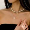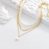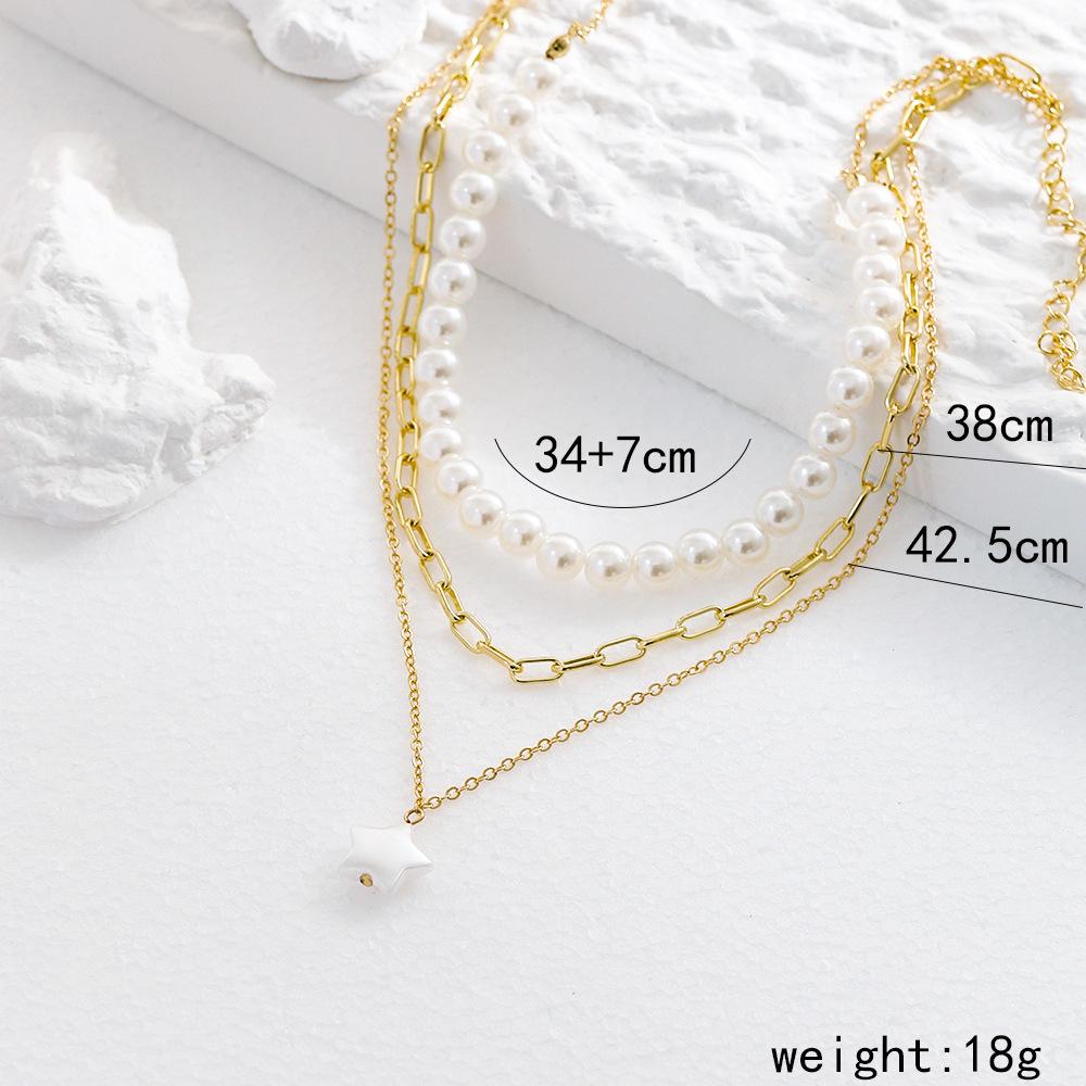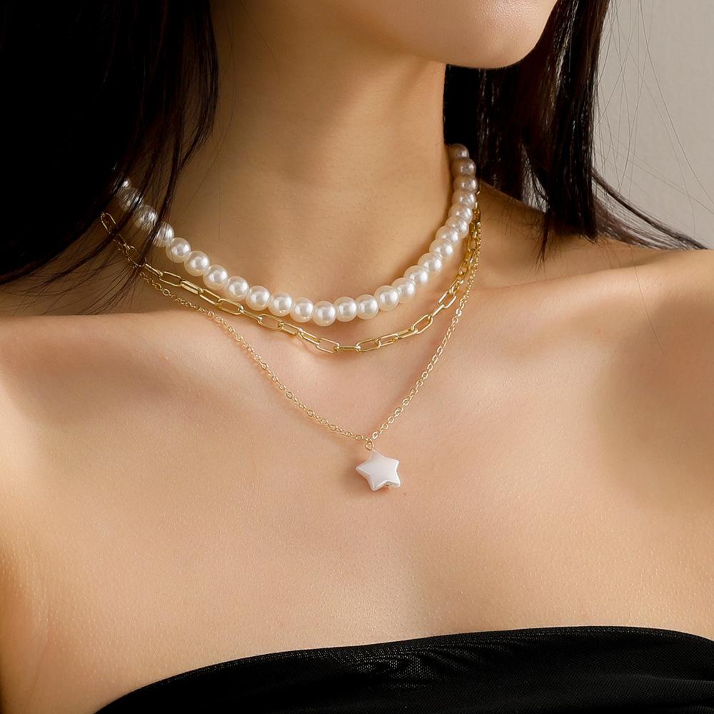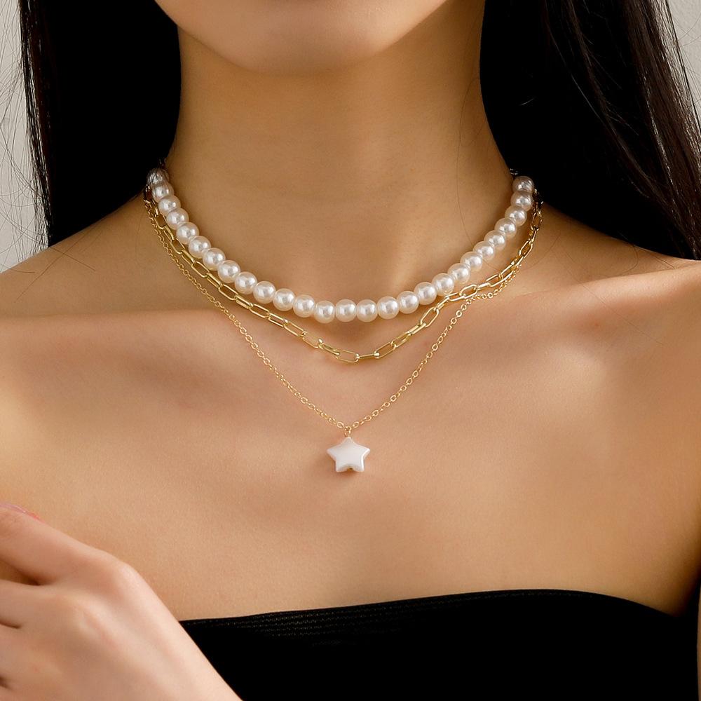 Collar con colgante de estrella de cinco puntas personalizado de moda transfronteriza entre Europa y Estados Unidos, collar multicapa de perla blanca, cadena de clavícula