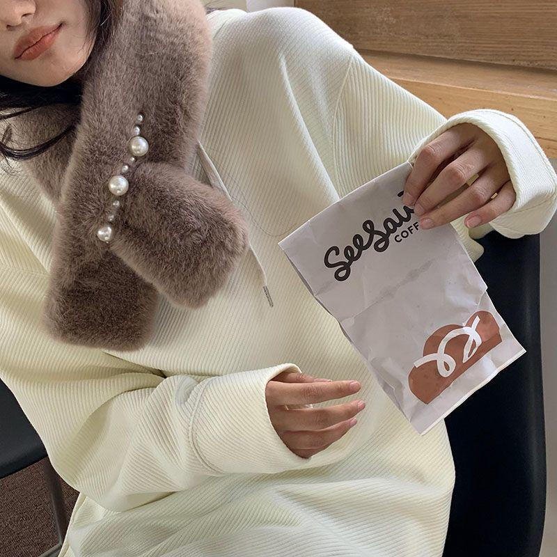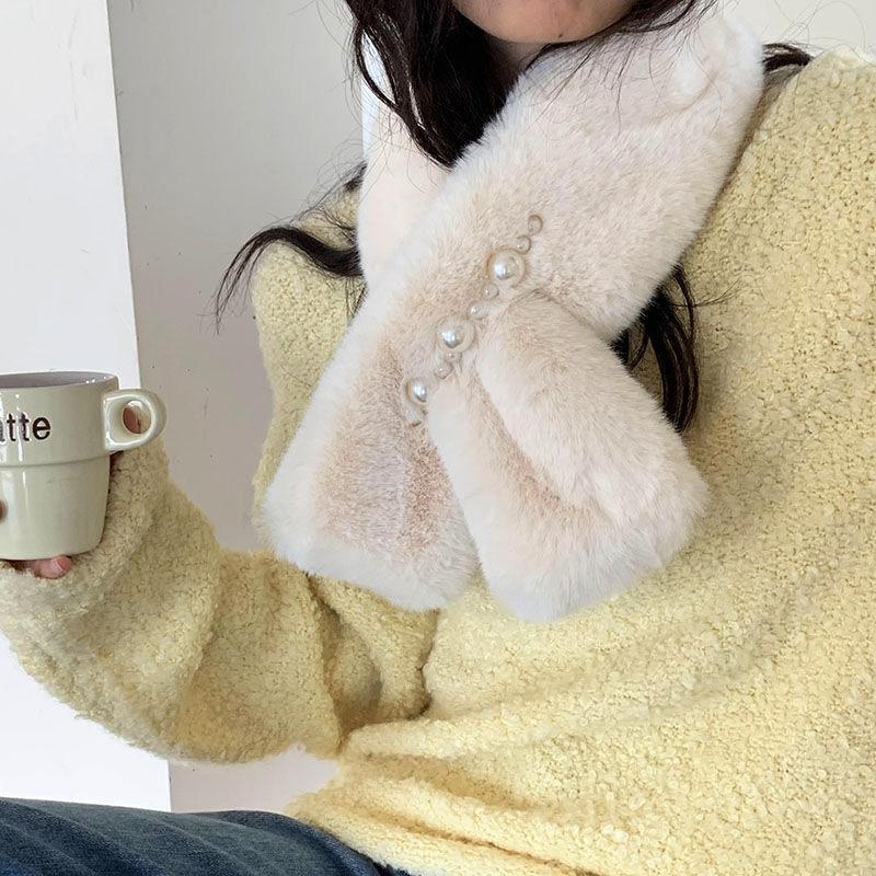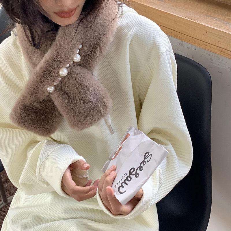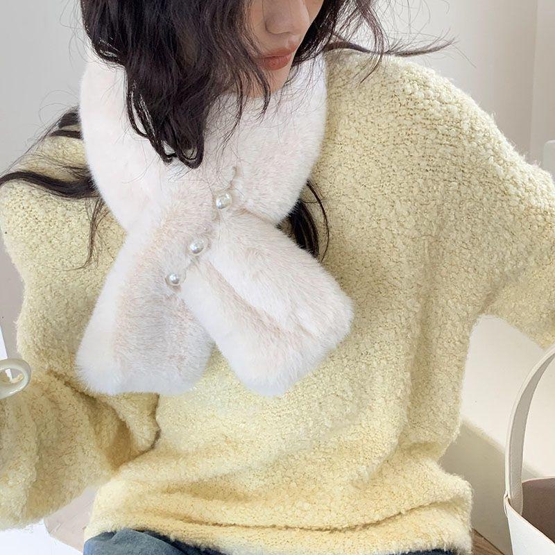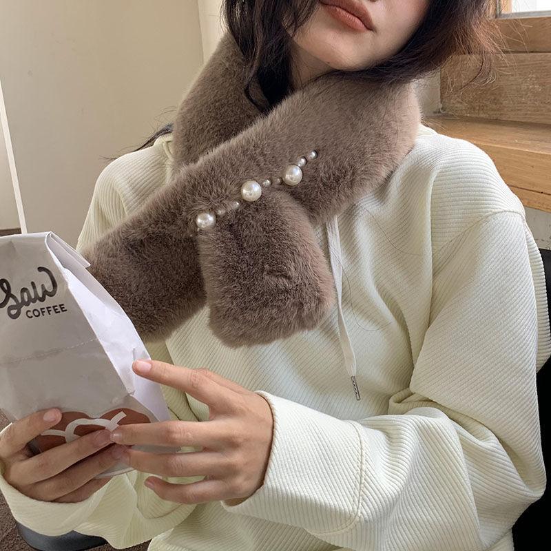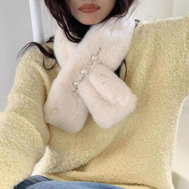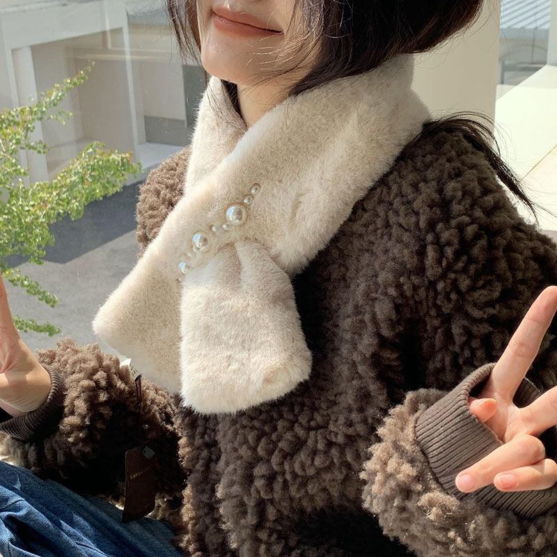 Bufanda de piel de perla imitación piel de conejo femenina peluda invierno celebridad de internet bufanda cálida cuello de piel