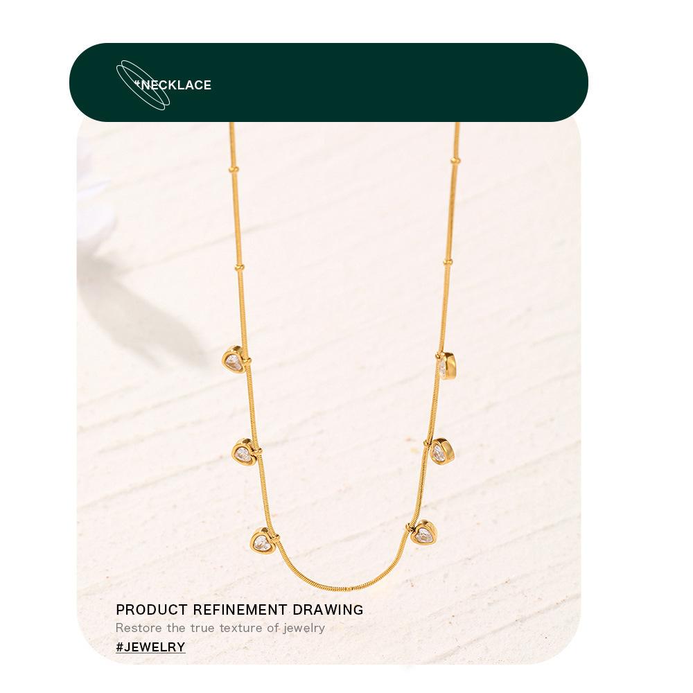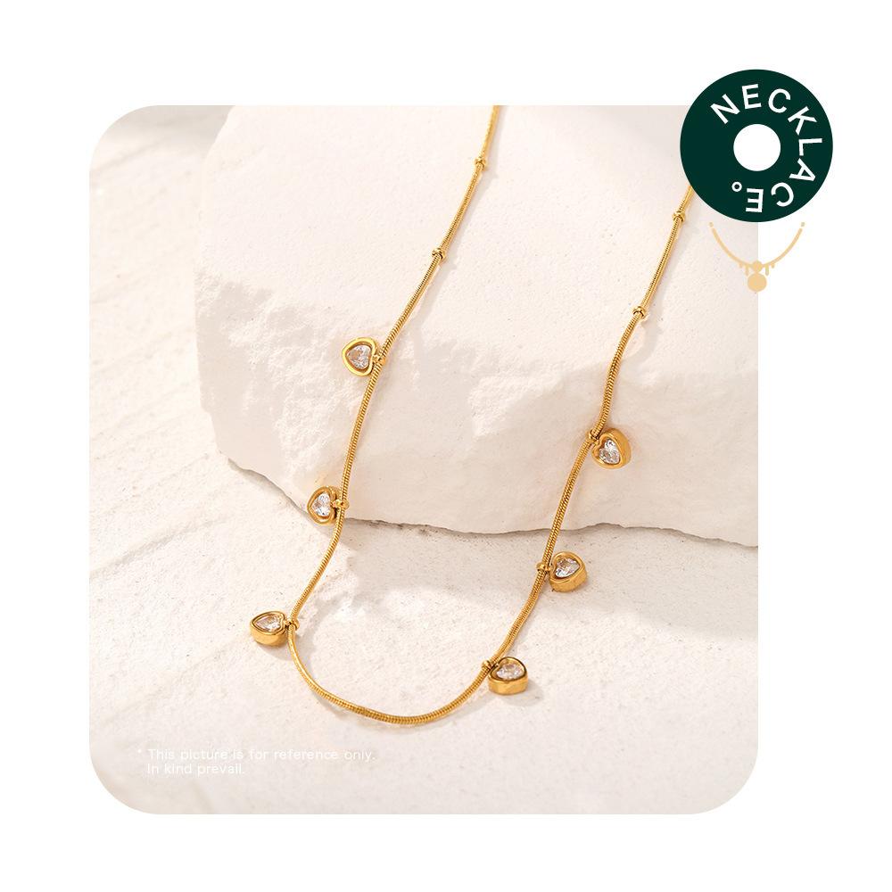 Nuevo collar de acero inoxidable de moda transfronterizo, lindo y exquisito con incrustaciones de diamantes, en acero inoxidable dorado, disponible al por mayor.