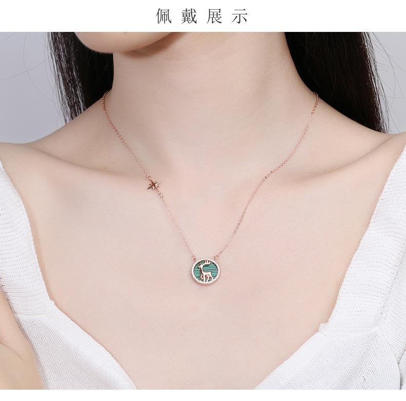 Un Ciervo Te Tiene Collar de Plata Esterlina S925 con Diamantes para Mujer Mori Cornamenta de Alce Día de San Valentín Set Simple para Estudiante Japonés y Coreano