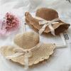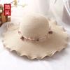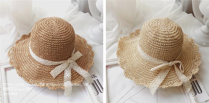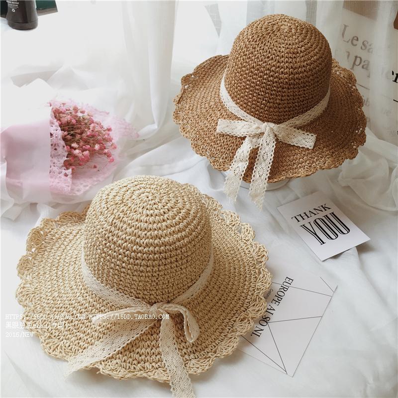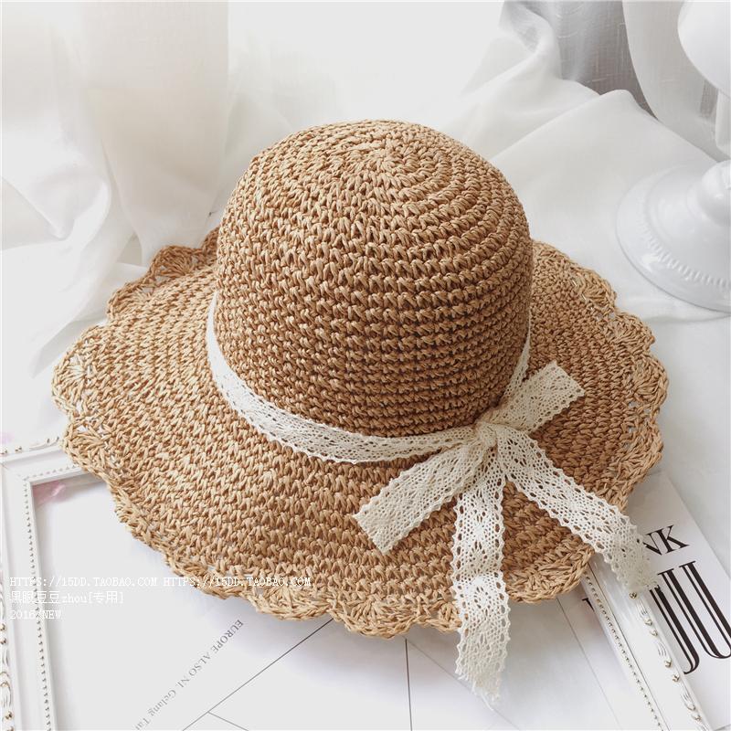 Sombrero de Paja de Verano Estilo Coreano Hecho a Mano Gancho-pin Sombrero de Ala Grande para Mujer Plegable Sombrero de Playa Lazo de Encaje Sombrero para el Sol