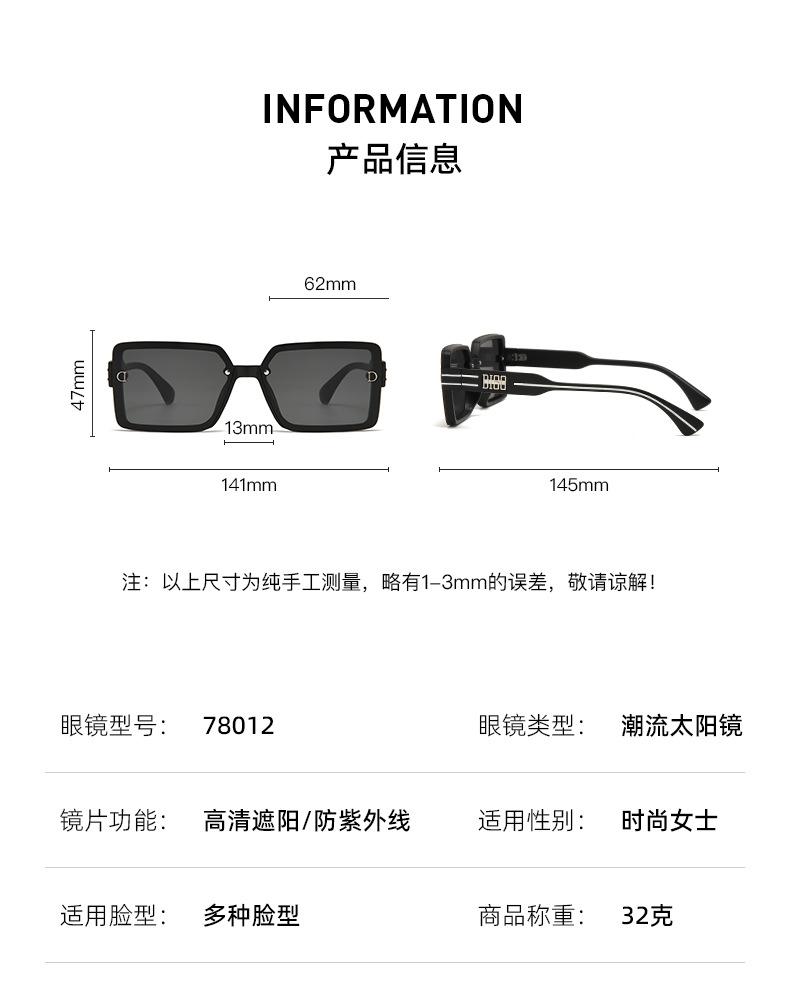 Nuevas Gafas de Sol Cuadradas de Montura Grande de Moda Elemento de Letra Personalizado Estilo Europeo y Americano Lujo Ligero Alta Textura Gafas de Sol con Protección Solar