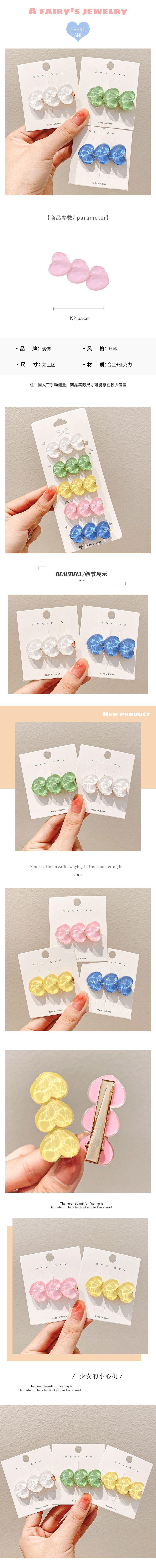 Pinza para el pelo transparente con forma de corazón para chica, ideal para celebraciones en internet, con forma de corazón, para el pelo roto, con flequillo frontal y tarjeta para el pelo.