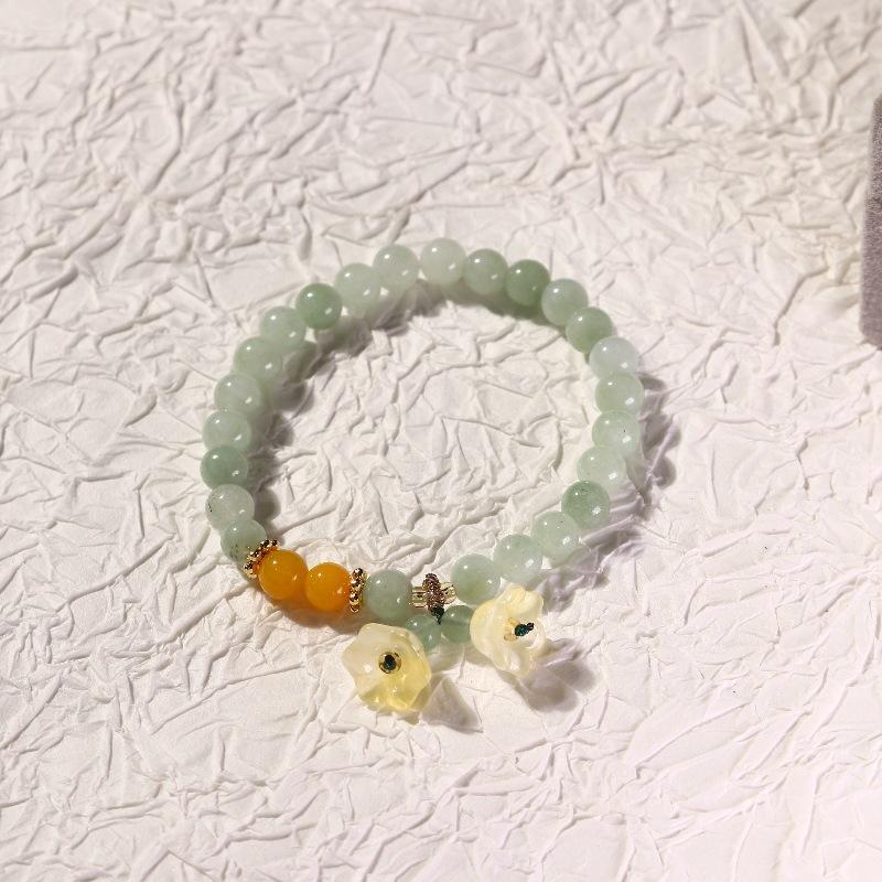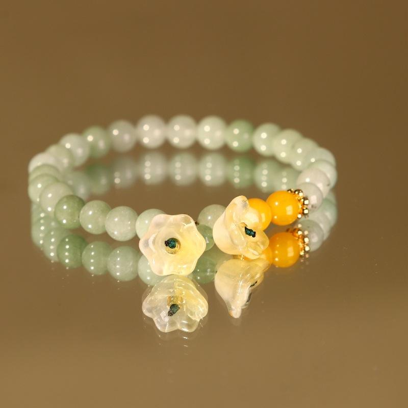 Pulsera de Cristal de Jade Fresco Pequeño para Mujer Pulsera con Cuentas Pulsera de Piedra Natural Doble Lirio de los Valles Joyería de Mano Perlas de Agua Dulce