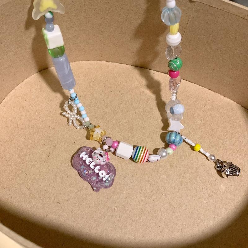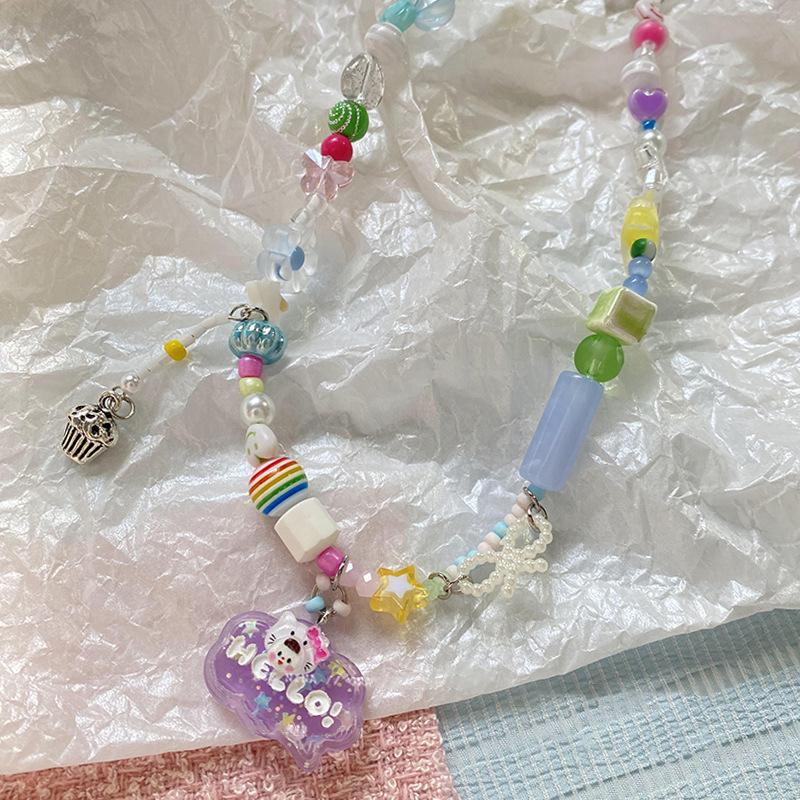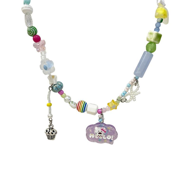 Diversión de dibujos animados ~ collar de costura con cuentas de dopamina de color para mujer 2024 nueva explosión dulce cool chica hot cadena clavicular