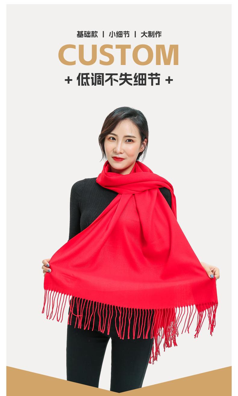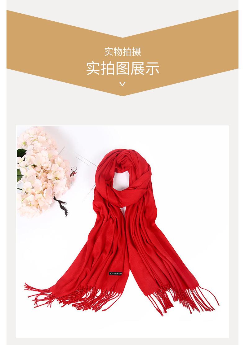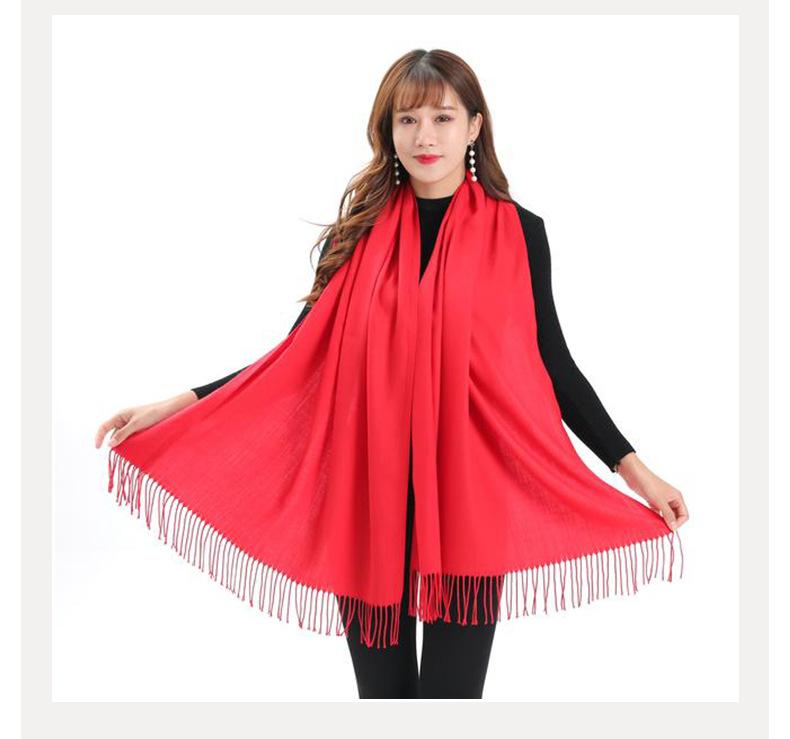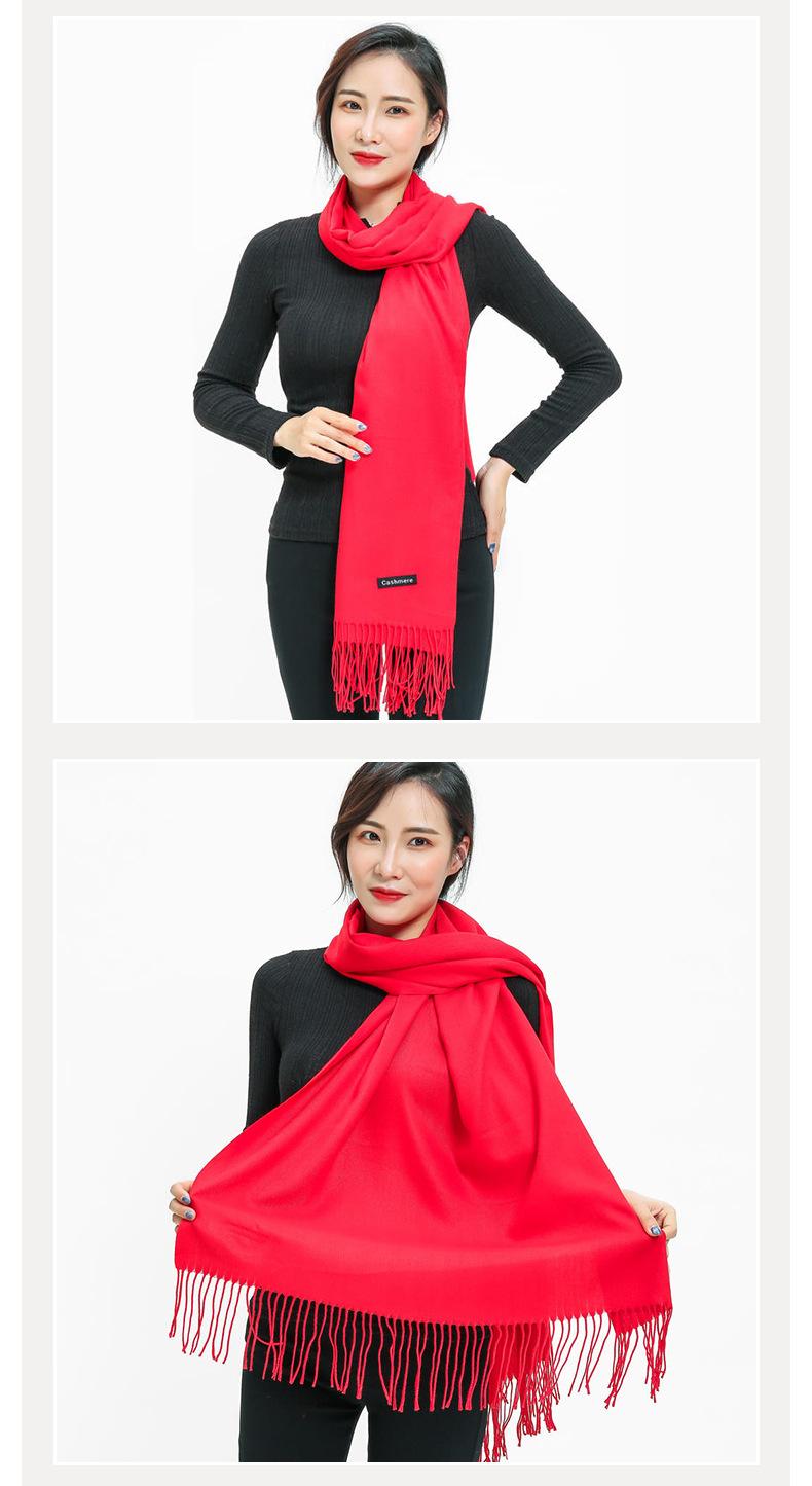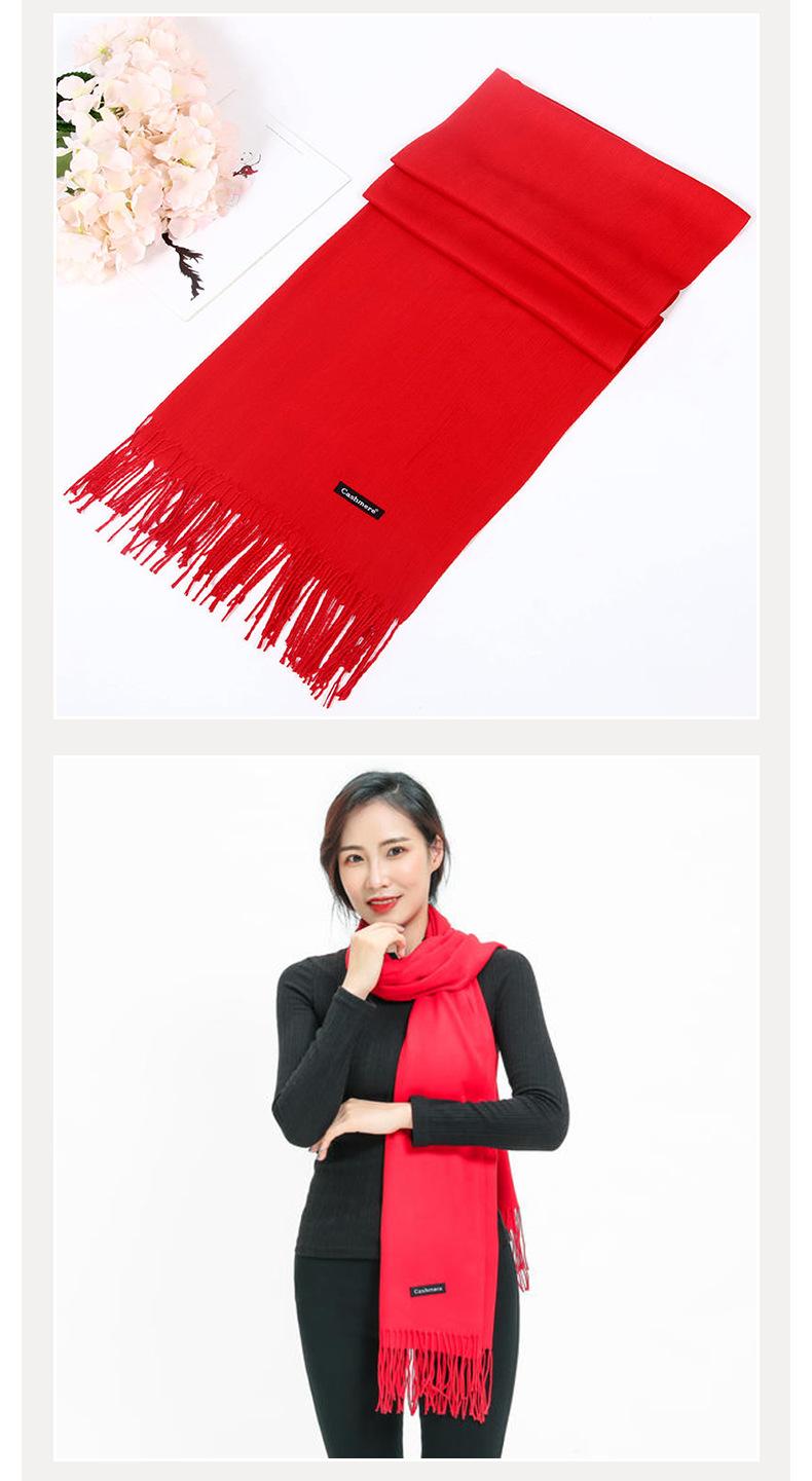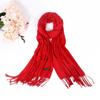 Bufanda K-Style Versátil de Imitación Cachemira Color Puro Otoño e Invierno Nueva Versátil Roja Reunión Anual Borla Bufanda Cálida