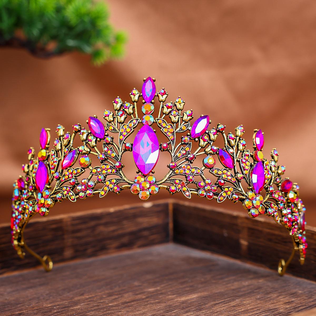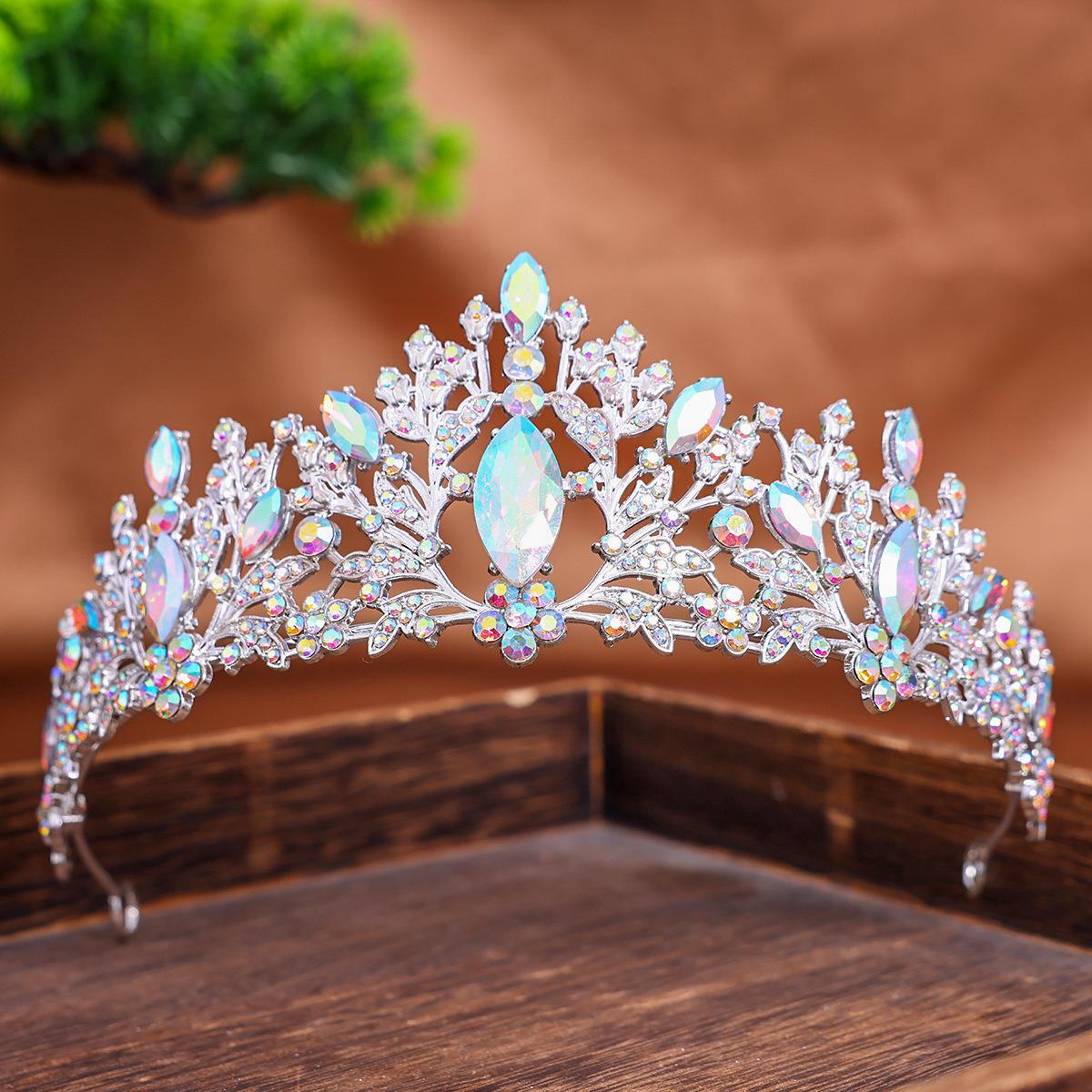 Tocado de corona nupcial europea y americana de alto nivel con diamantes de colores para banquetes y fiestas, corona de boda de princesa con diamantes de imitación.