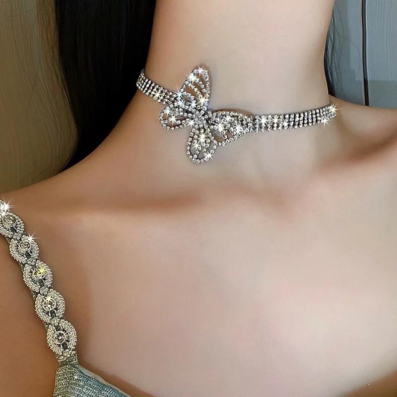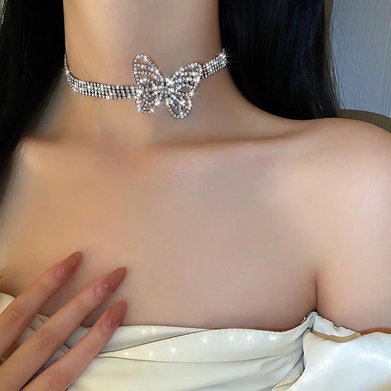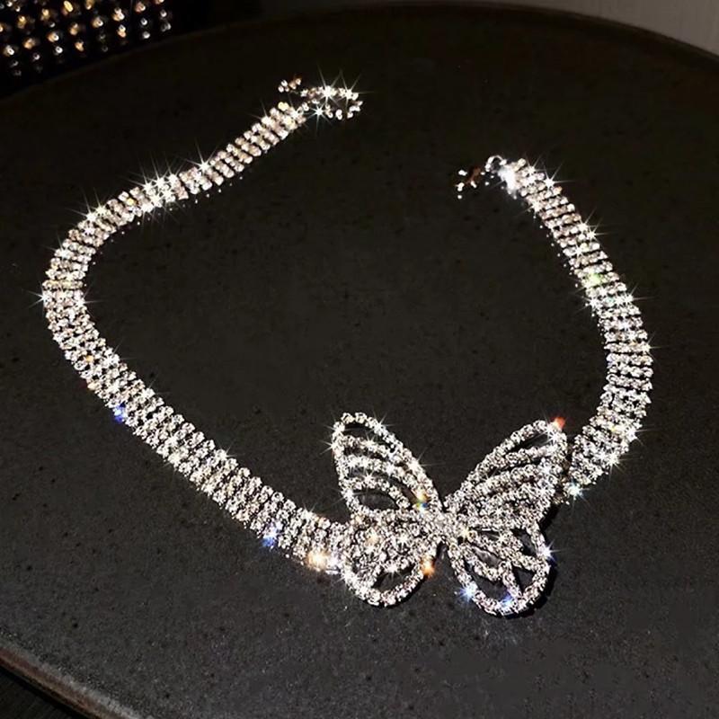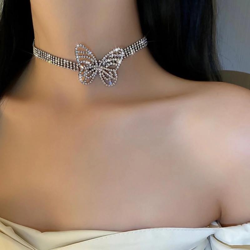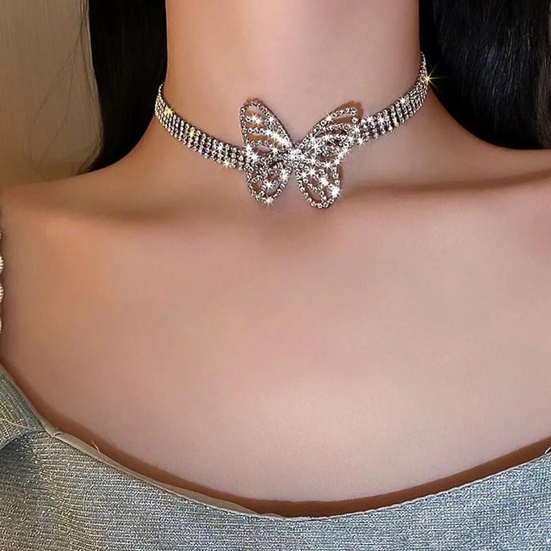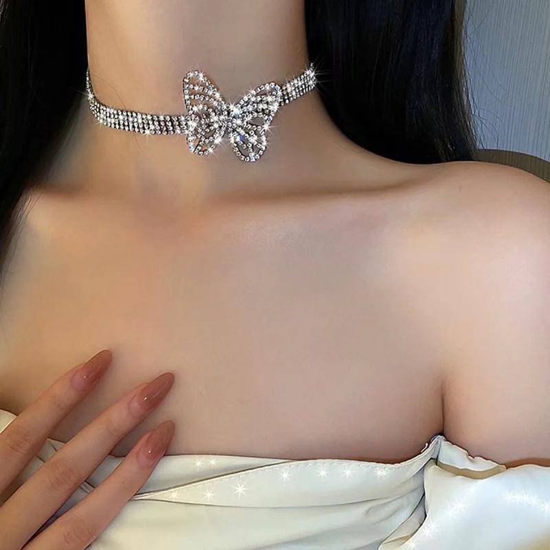 Nuevo collar de mariposa de diamantes, ligero, de lujo, con diseño de nicho, fino destello de diamantes de imitación, elegante cadena de clavícula de hada corta