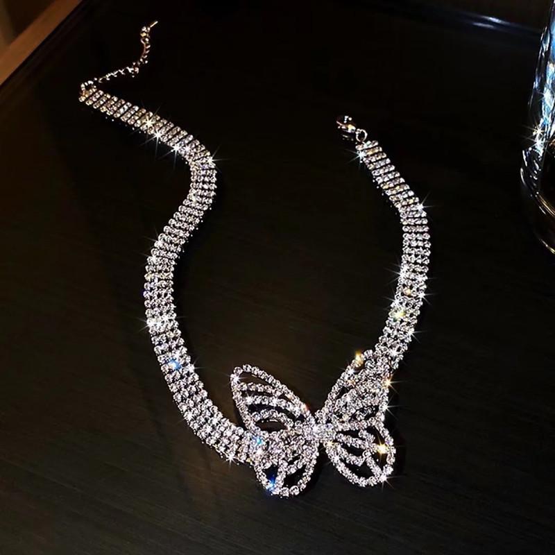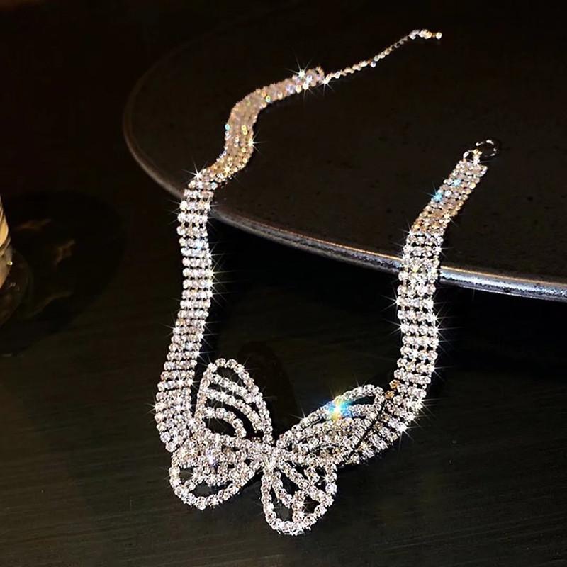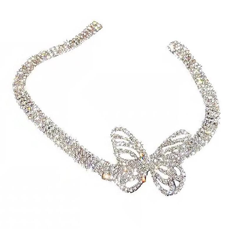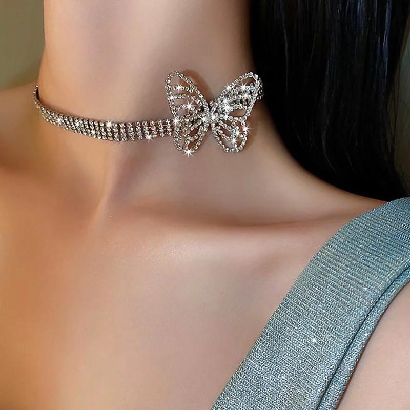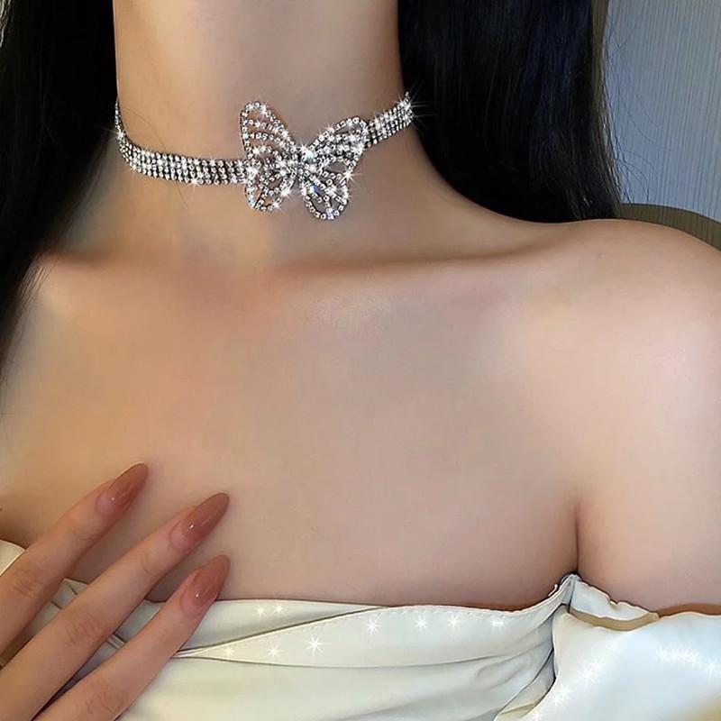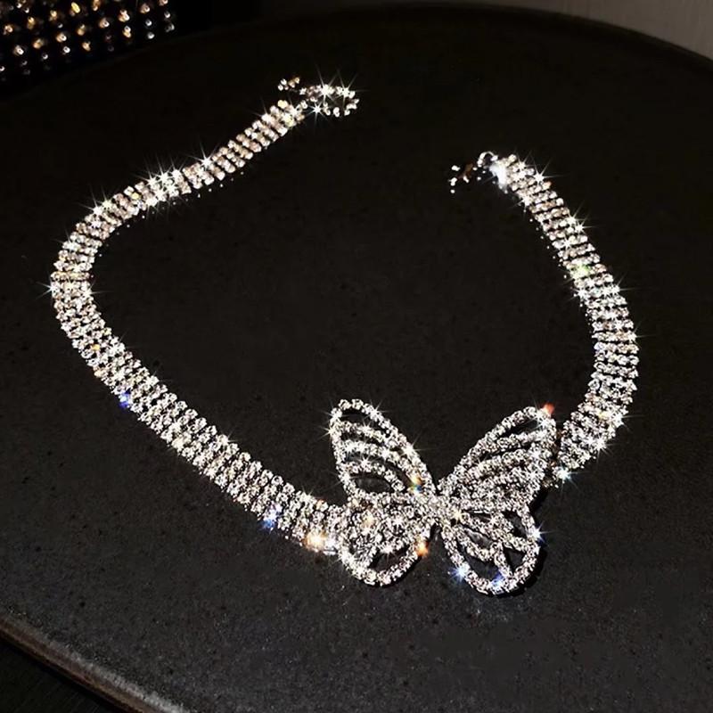 Nuevo collar de mariposa de diamantes, ligero, de lujo, con diseño de nicho, fino destello de diamantes de imitación, elegante cadena de clavícula de hada corta
