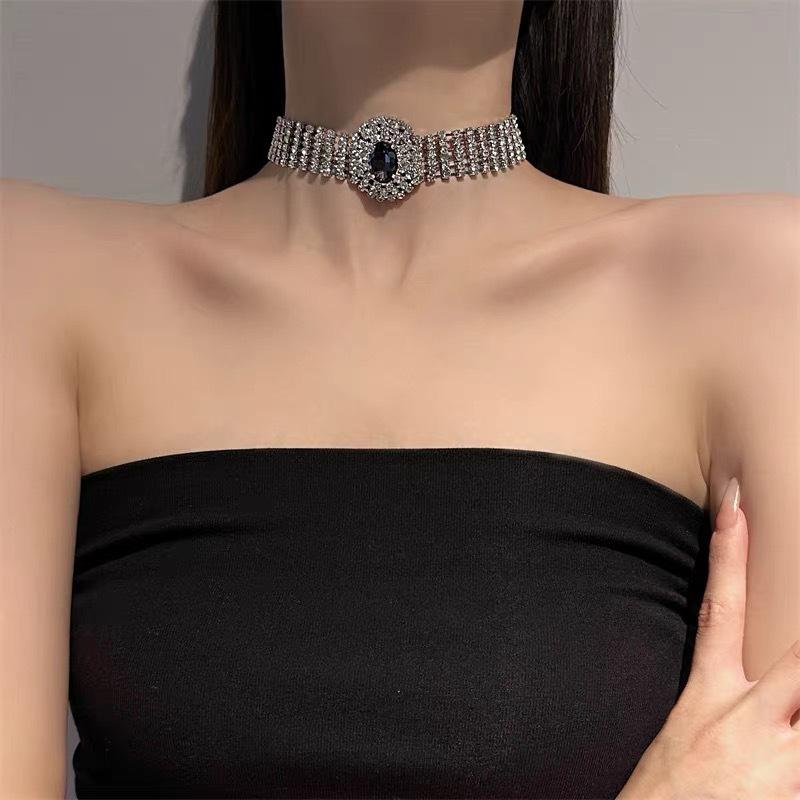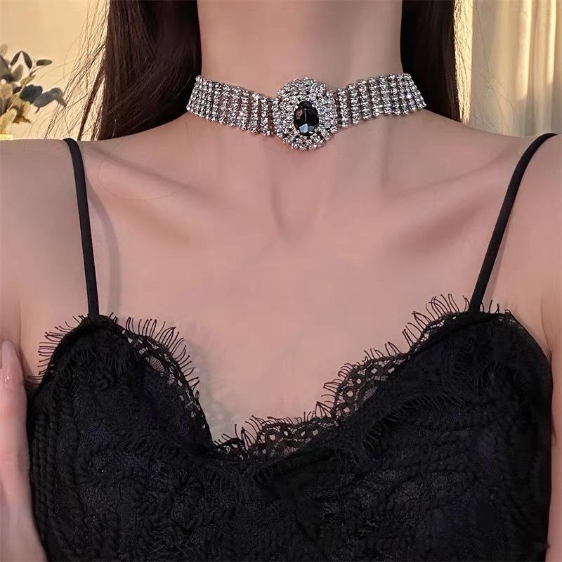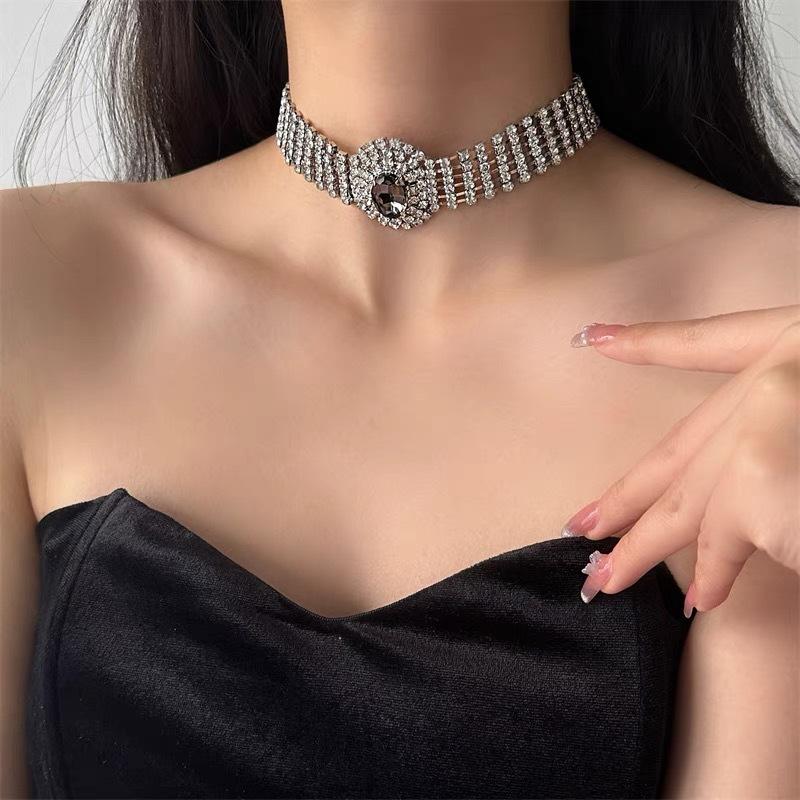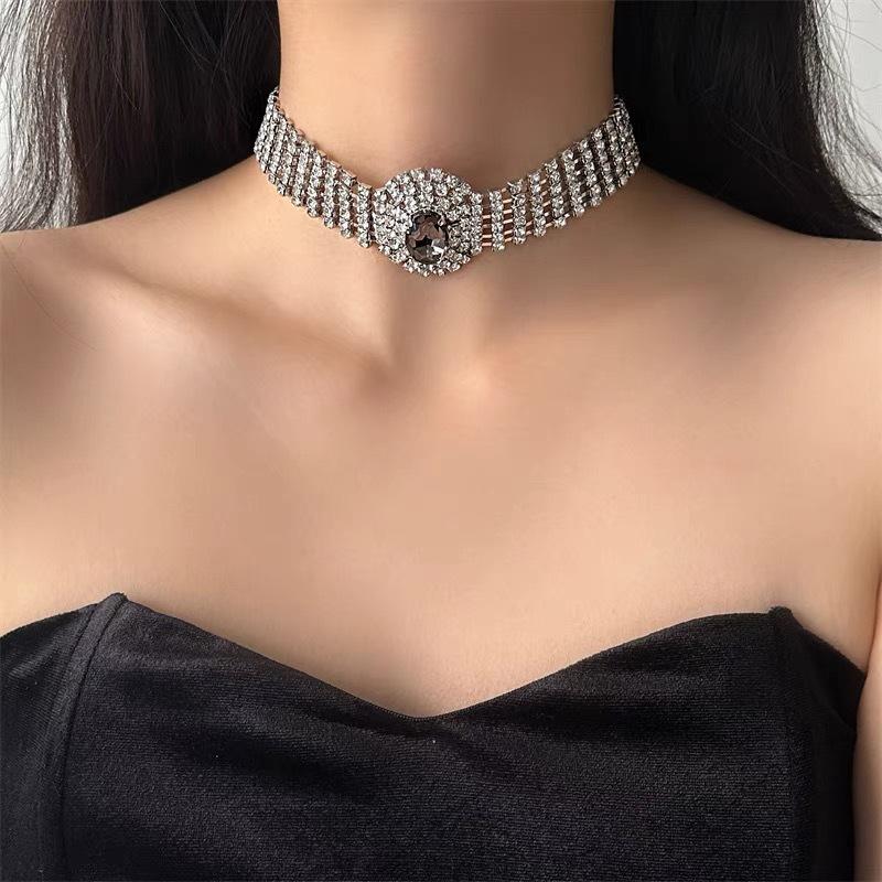 Collar de cadena ancha multicapa con cristales de diamante para clavícula, elegante gargantilla corta para vestido de novia de mujer, nuevo