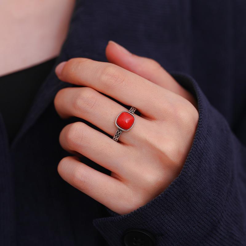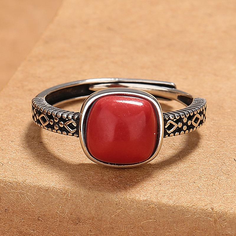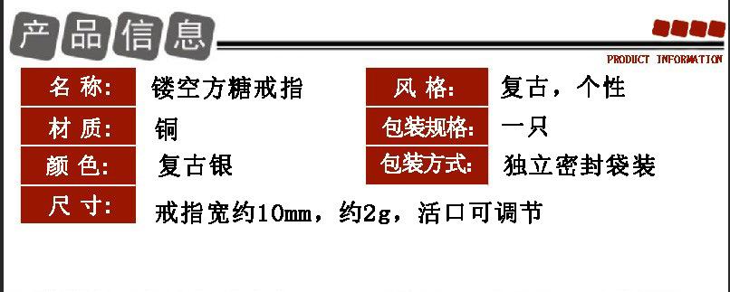 Anillo de estilo retro con corte de azúcar ahuecado y cuadrado, para mujer, con apertura personalizada, diseño de nicho ajustable, anillo creativo para dedo índice.