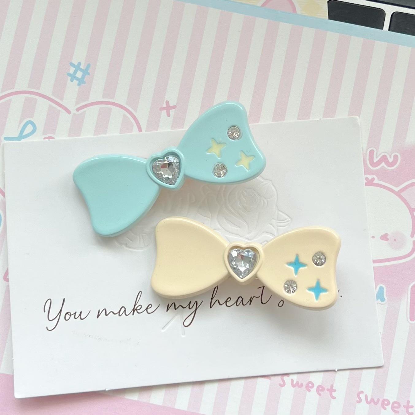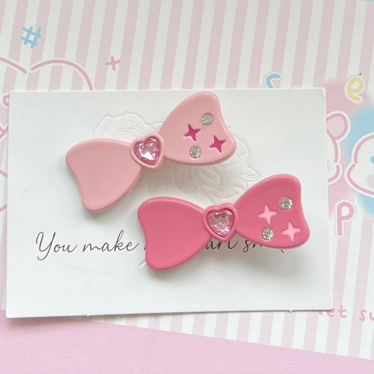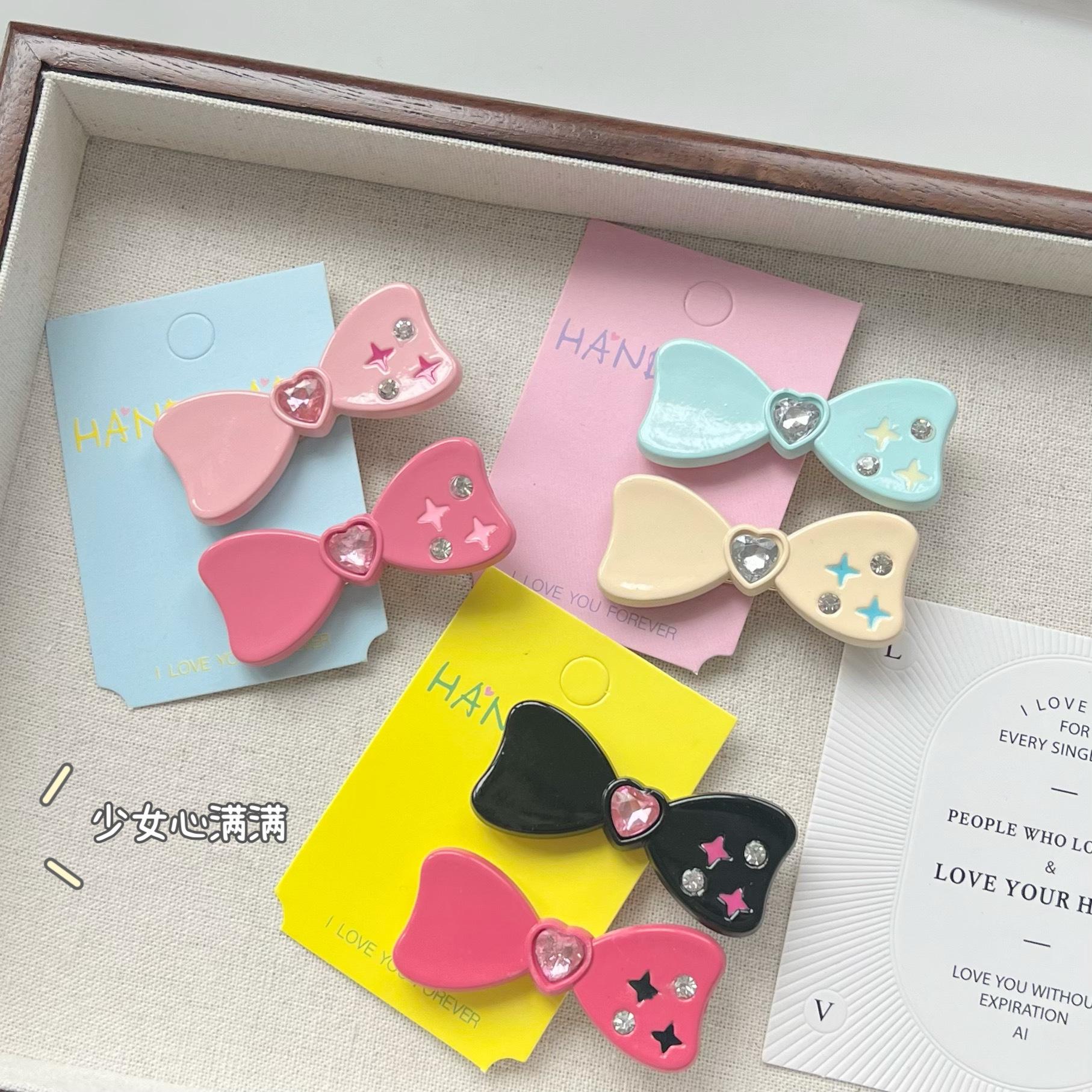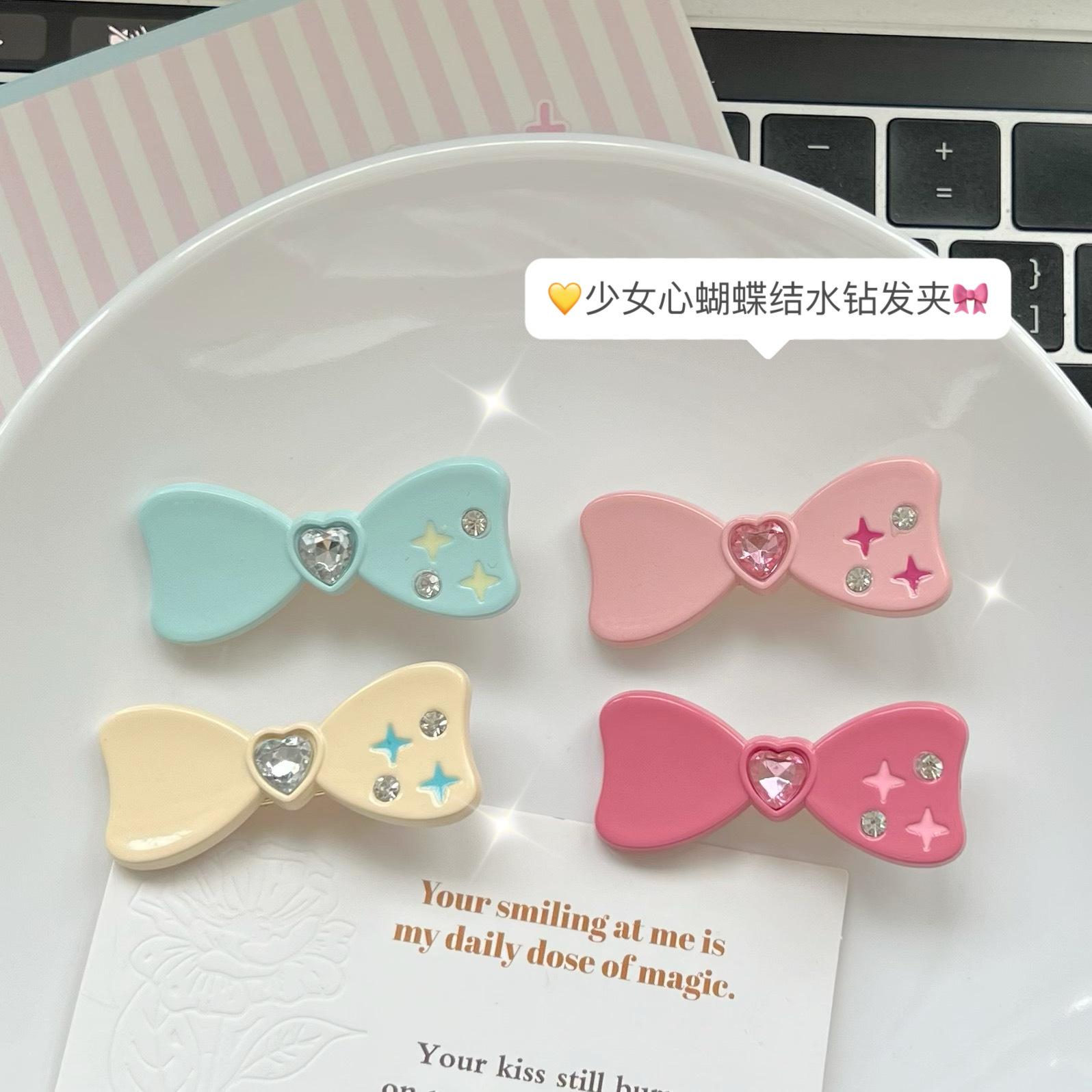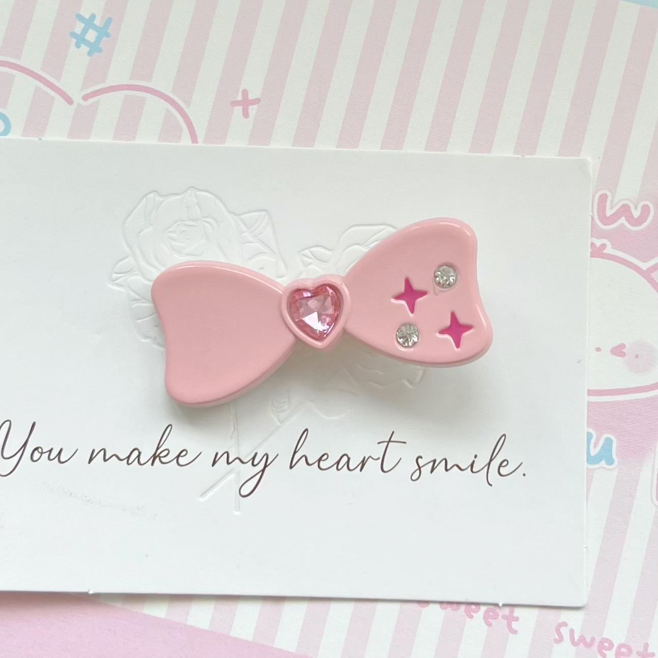 Horquilla con clip lateral de lazo de diamante estilo japonés y coreano para niña, estilo japonés, con forma de corazón, accesorios para el cabello con flequillo de amor para estudiantes