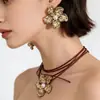 Collar con colgante de flor dorada y perla multiusos, cadena de clavícula, collar de encaje rojo, gargantilla para mujer
