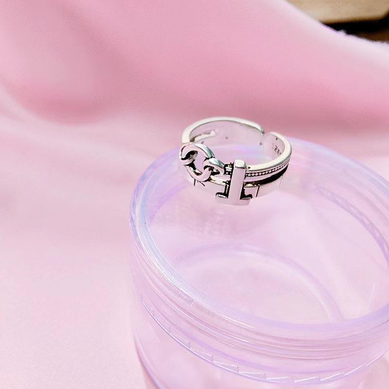 Anillo de diseño de letra T rojo de internet de moda versátil estilo japonés y coreano, anillo de personalidad retro, anillo para el dedo índice, nueva moda
