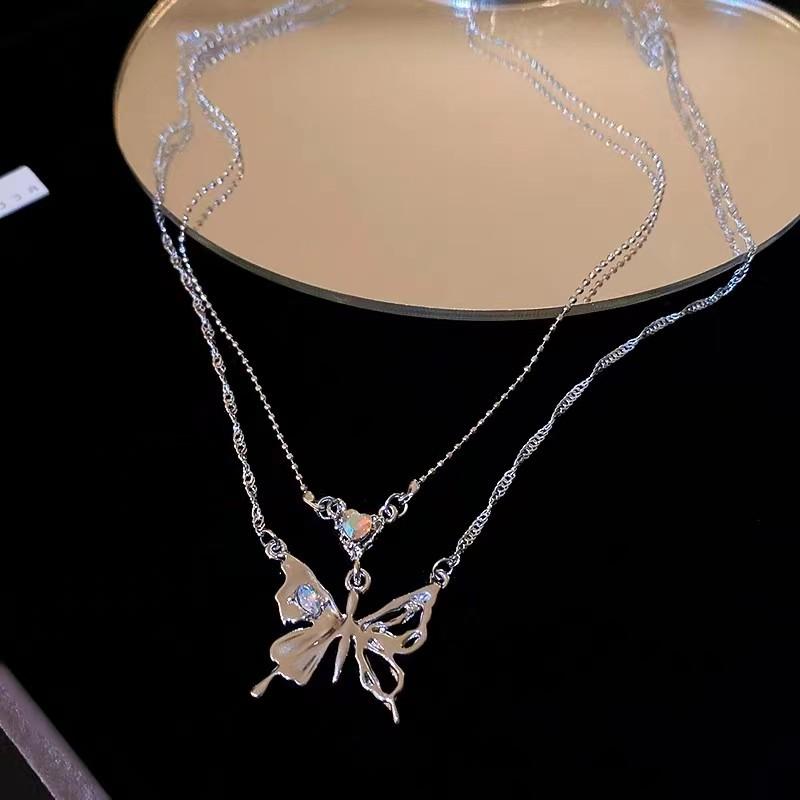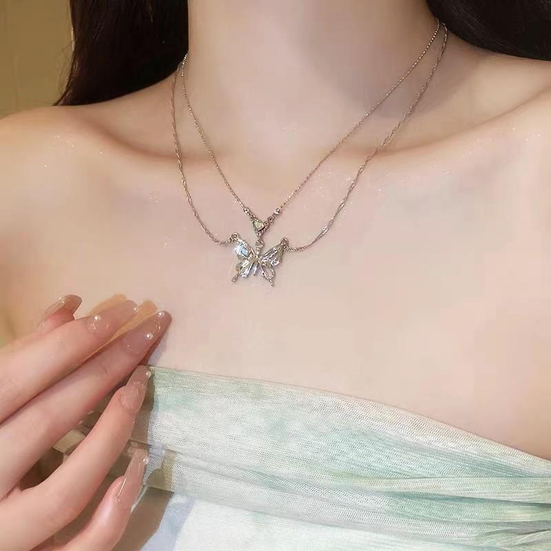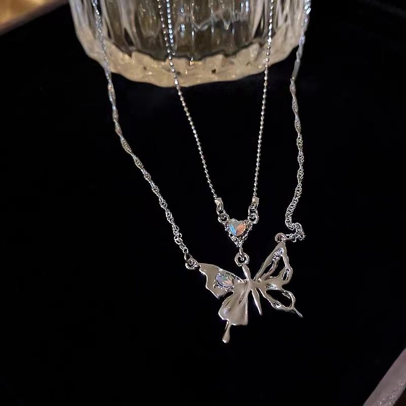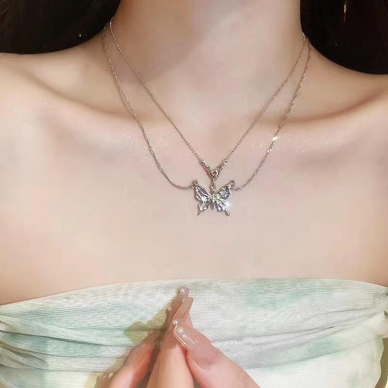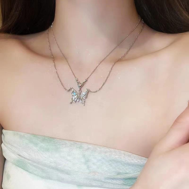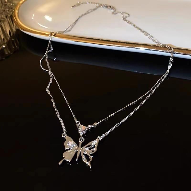 Collar de doble capa Mariposa Amor con Incrustaciones de Diamantes, Lujo Ligero, Cadena de Clavícula de Moda de Alta Gama, Collar de Temperamento Personalizado