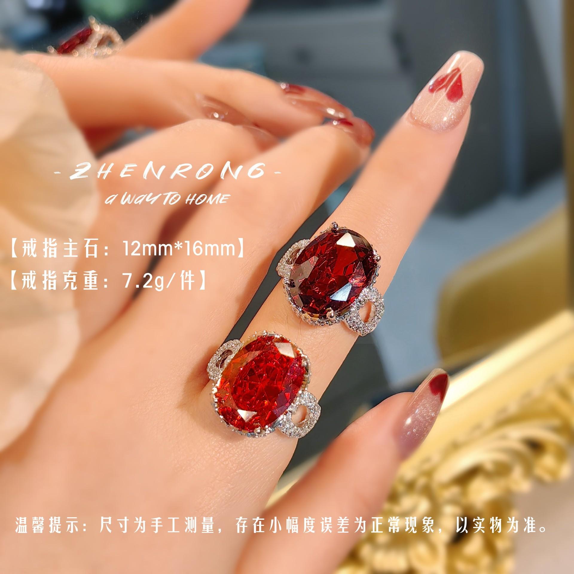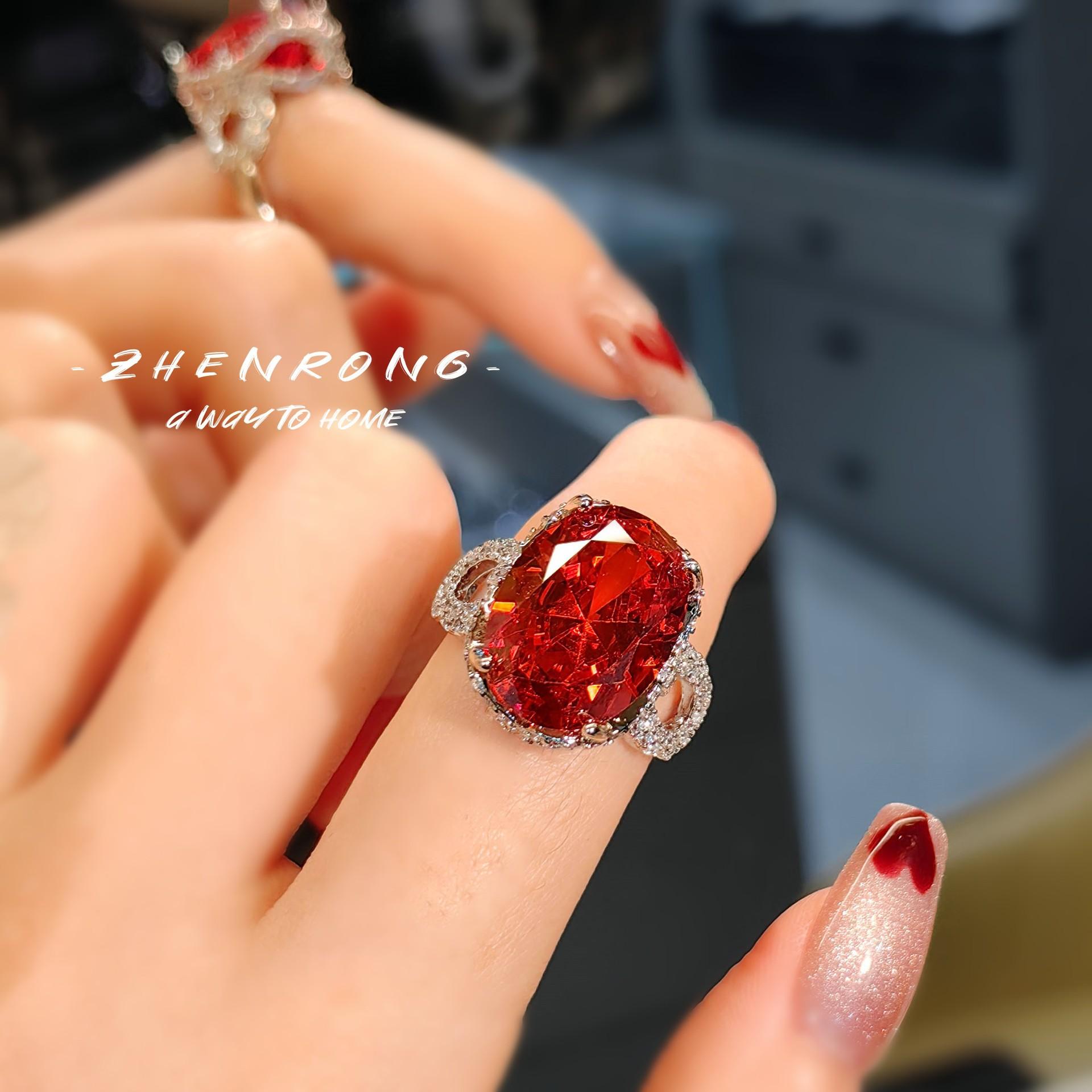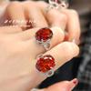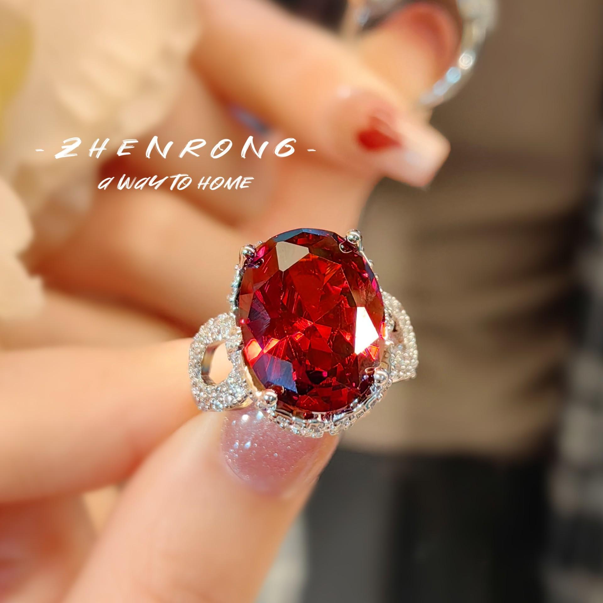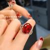 Anillo de Huevo de Paloma de Moda Fanta Abierto de Lujo Ligero con Micro Incrustaciones de Diamantes Completos Incrustado con Diamante de Alto Carbono Zircón Rojo Granate Anillo para Mujer
