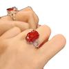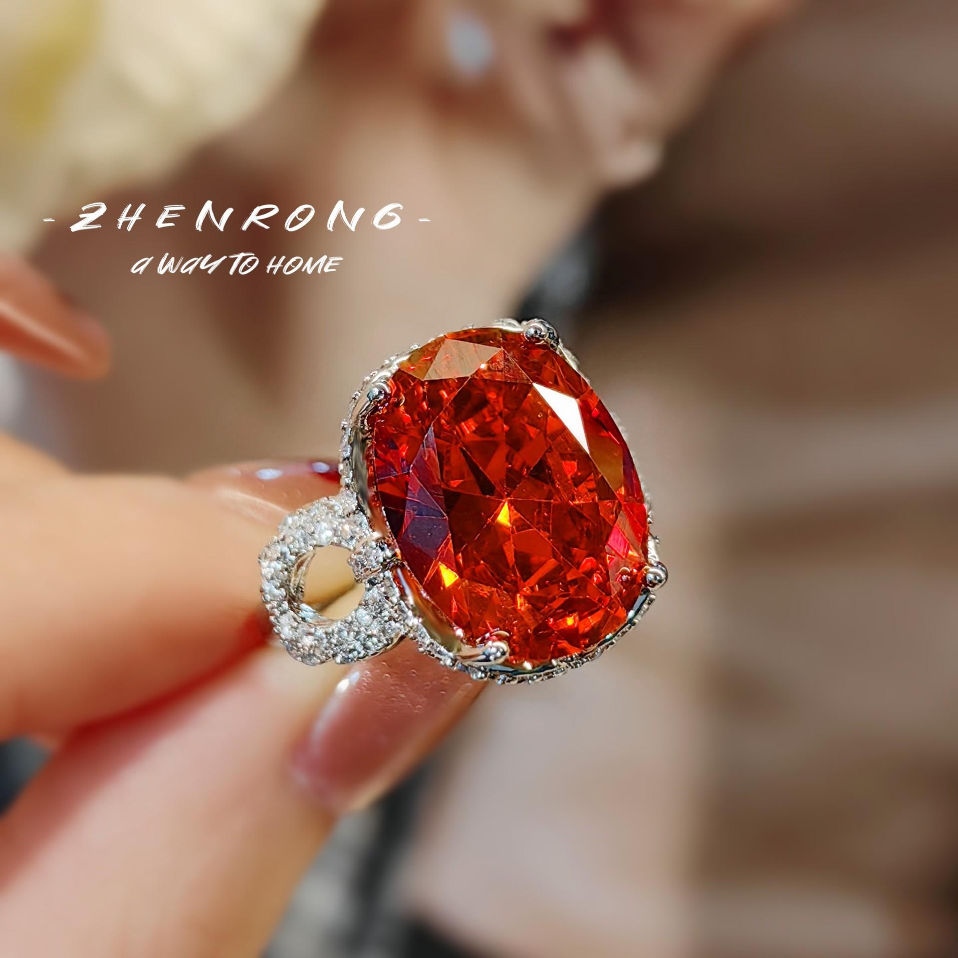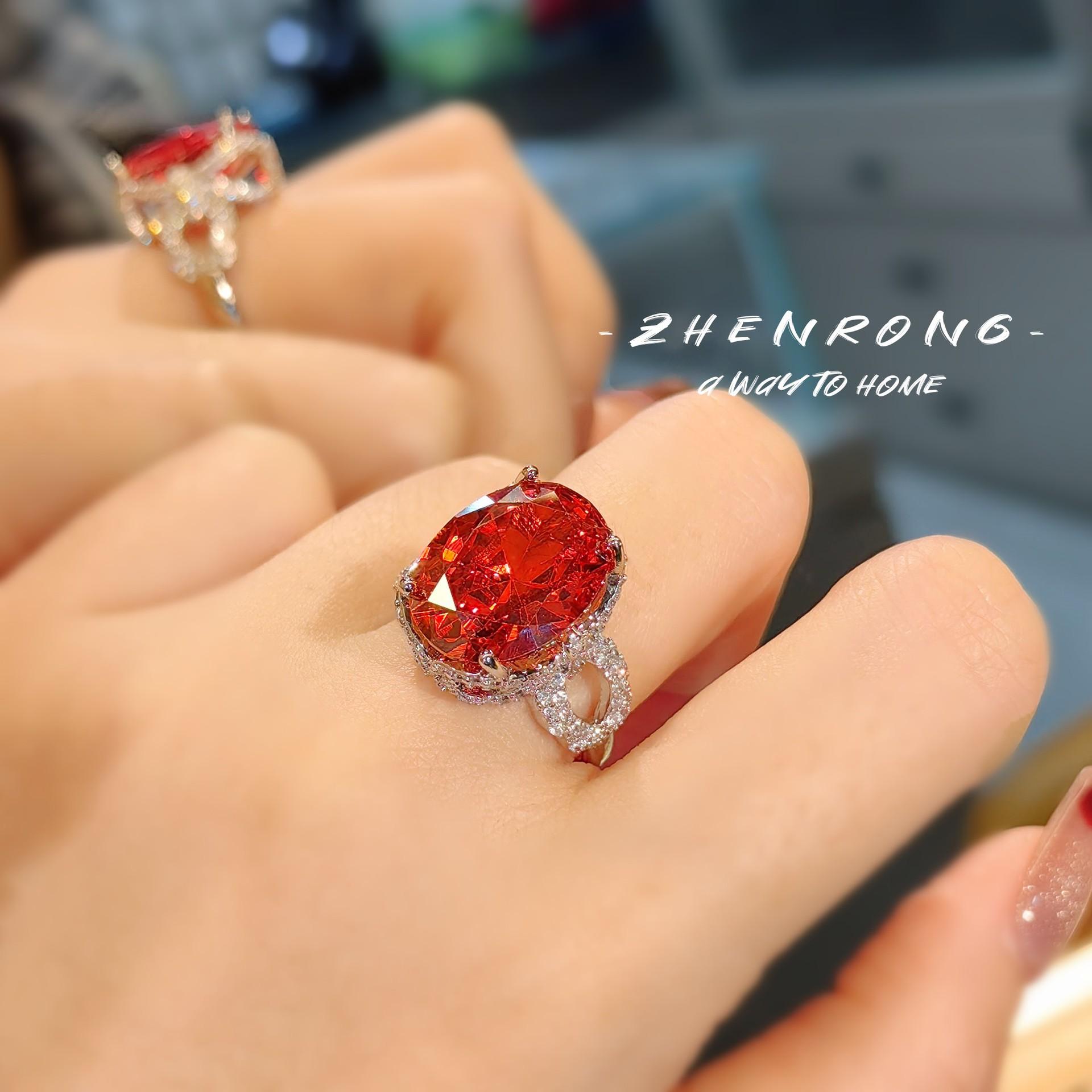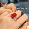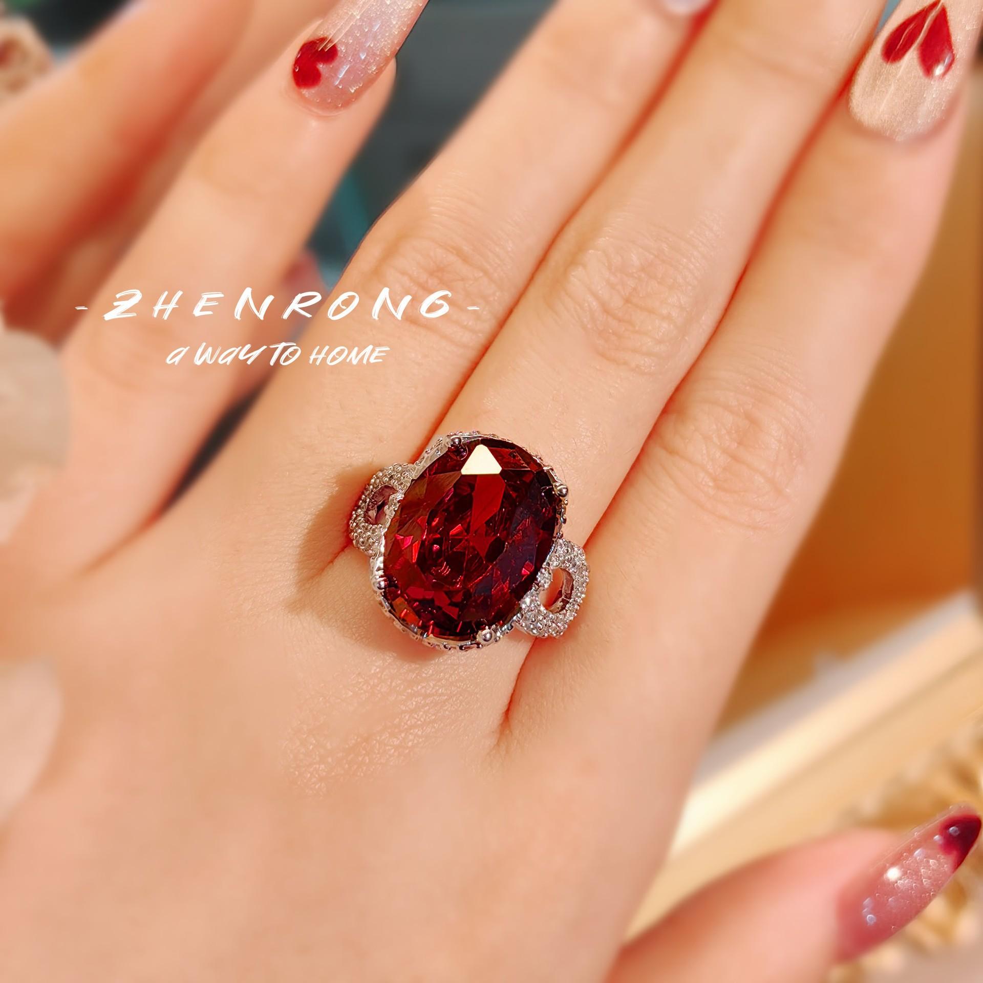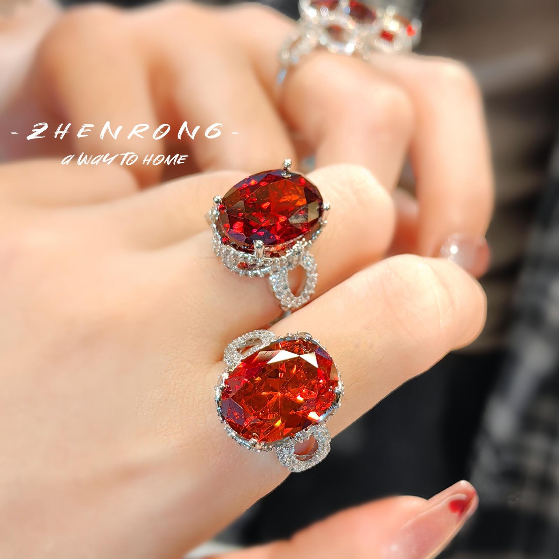 Anillo de Huevo de Paloma de Moda Fanta Abierto de Lujo Ligero con Micro Incrustaciones de Diamantes Completos Incrustado con Diamante de Alto Carbono Zircón Rojo Granate Anillo para Mujer