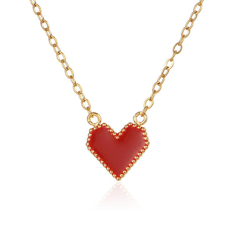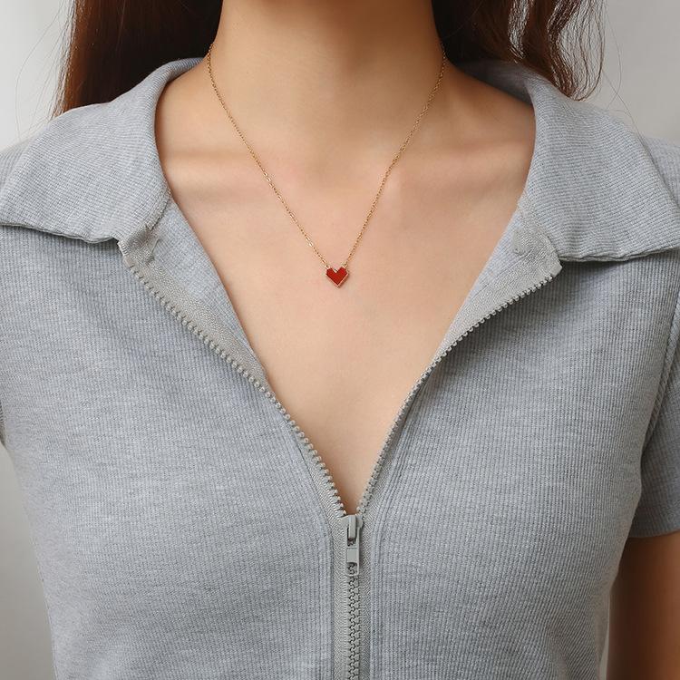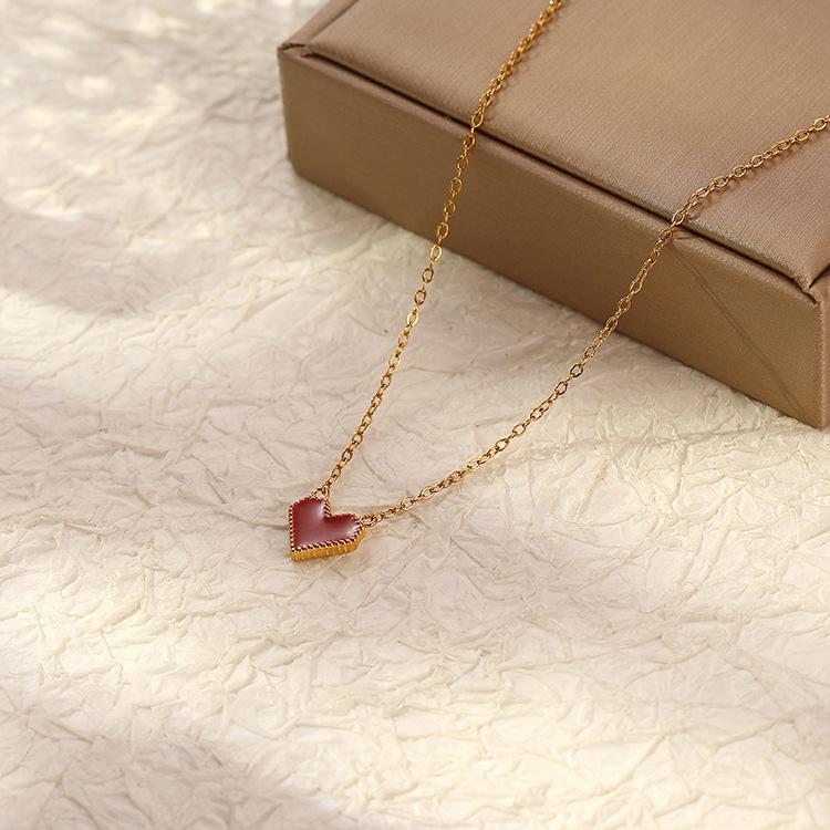 Collar de cadena de clavícula de lujo con estilo francés ligero y encantador, de acero de titanio, chapado en oro de 18 quilates, con forma de corazón de melocotón retro, accesorios a juego, joyería femenina