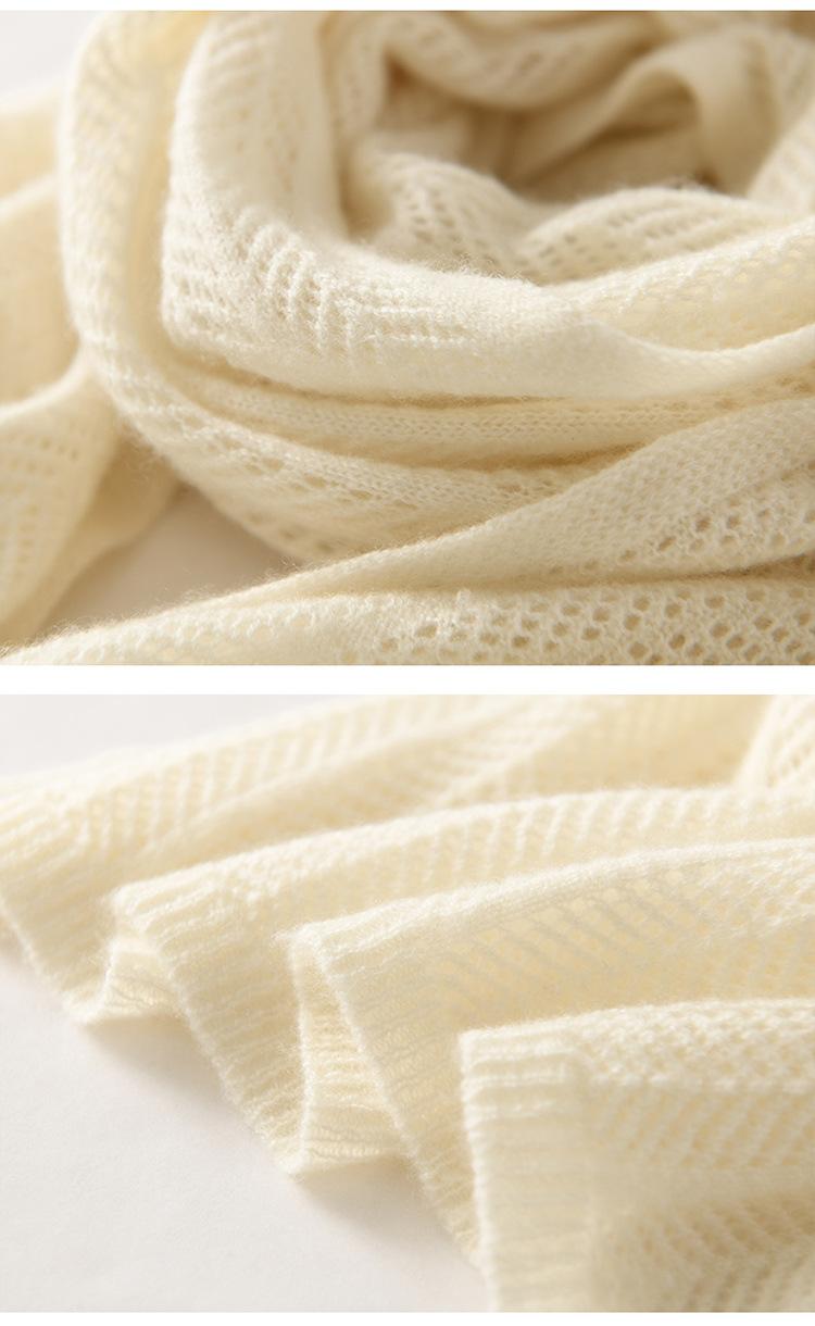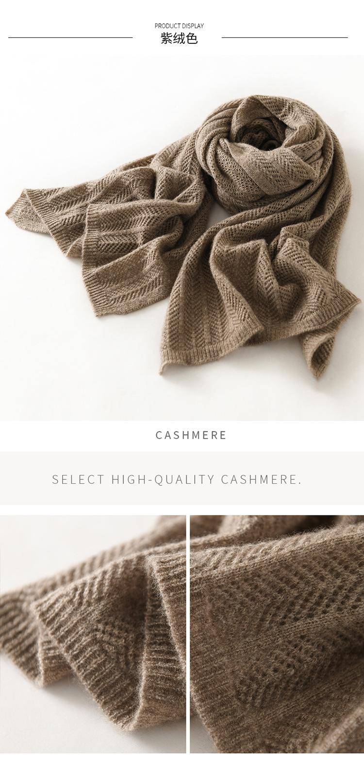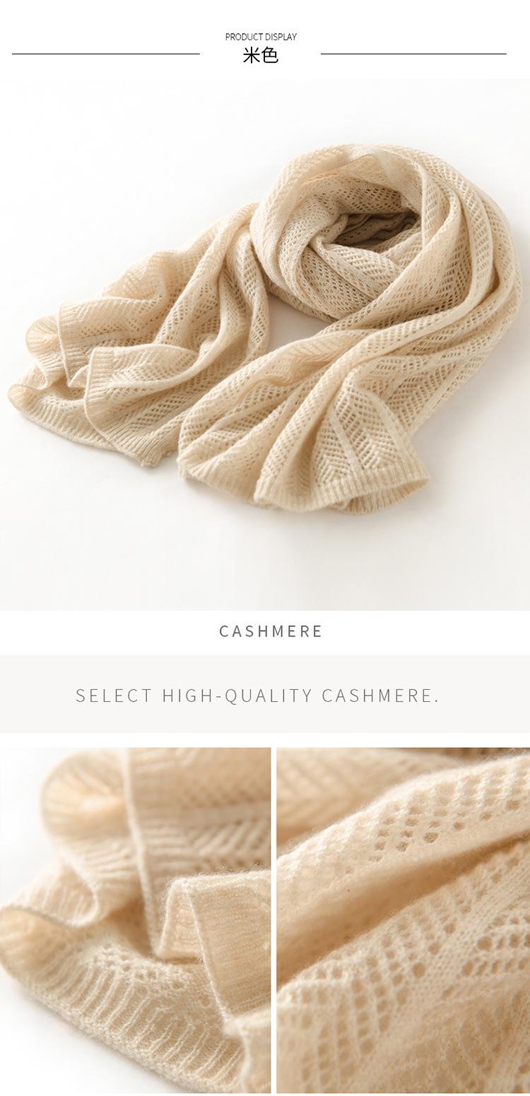 Bufanda de cachemira de color puro para otoño e invierno de 2023, chal de cachemira de punto hueco de ganchillo para mujer, bufanda larga con cuello