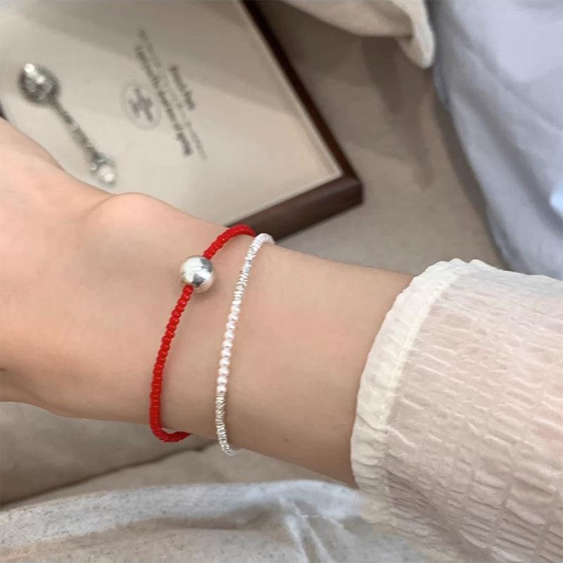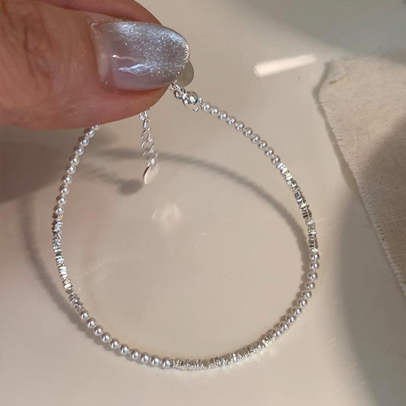 Pulsera Fina de Perlas Plateadas Rotas con Sentido de Diseño Nicho de Lujo Ligero para Mujer, Moderna, Personalizada, Simple, Combinable con Todo, de Alta Gama para Usar Apilada