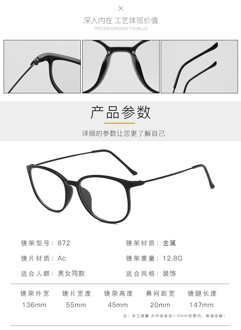 Gafas ovaladas artísticas retro de estilo coreano 2021 con montura de imitación TR, gafas lisas antiluz azul 872 con luz de miopía