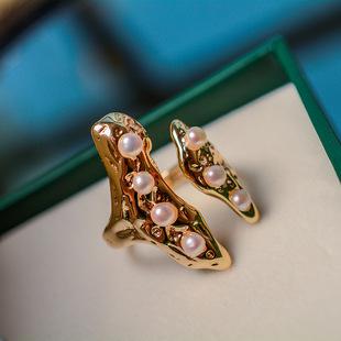Anillo de perla natural de diseño nicho transmisión en vivo celebridad de internet tejido ins anillo de perla de agua dulce de luz fuerte femenino