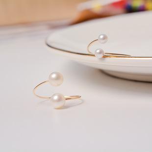 Anillo minimalista de perla natural de agua dulce para mujer, anillo de novia con doble perla chapado en oro americano de 14k de nicho.