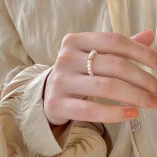 anillo de perlas pequeñas naturales de agua dulce de 3-4 mm estilo ins, foto callejera, nicho, diseño de alta gama, anillo simple retro femenino