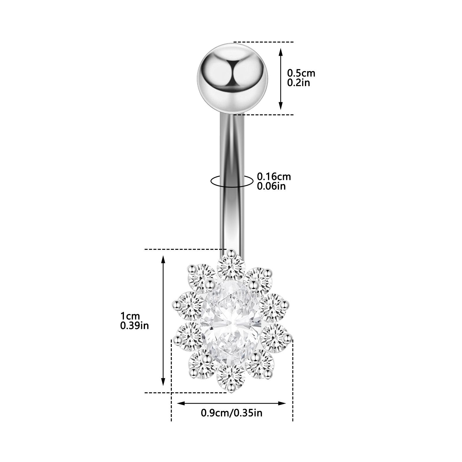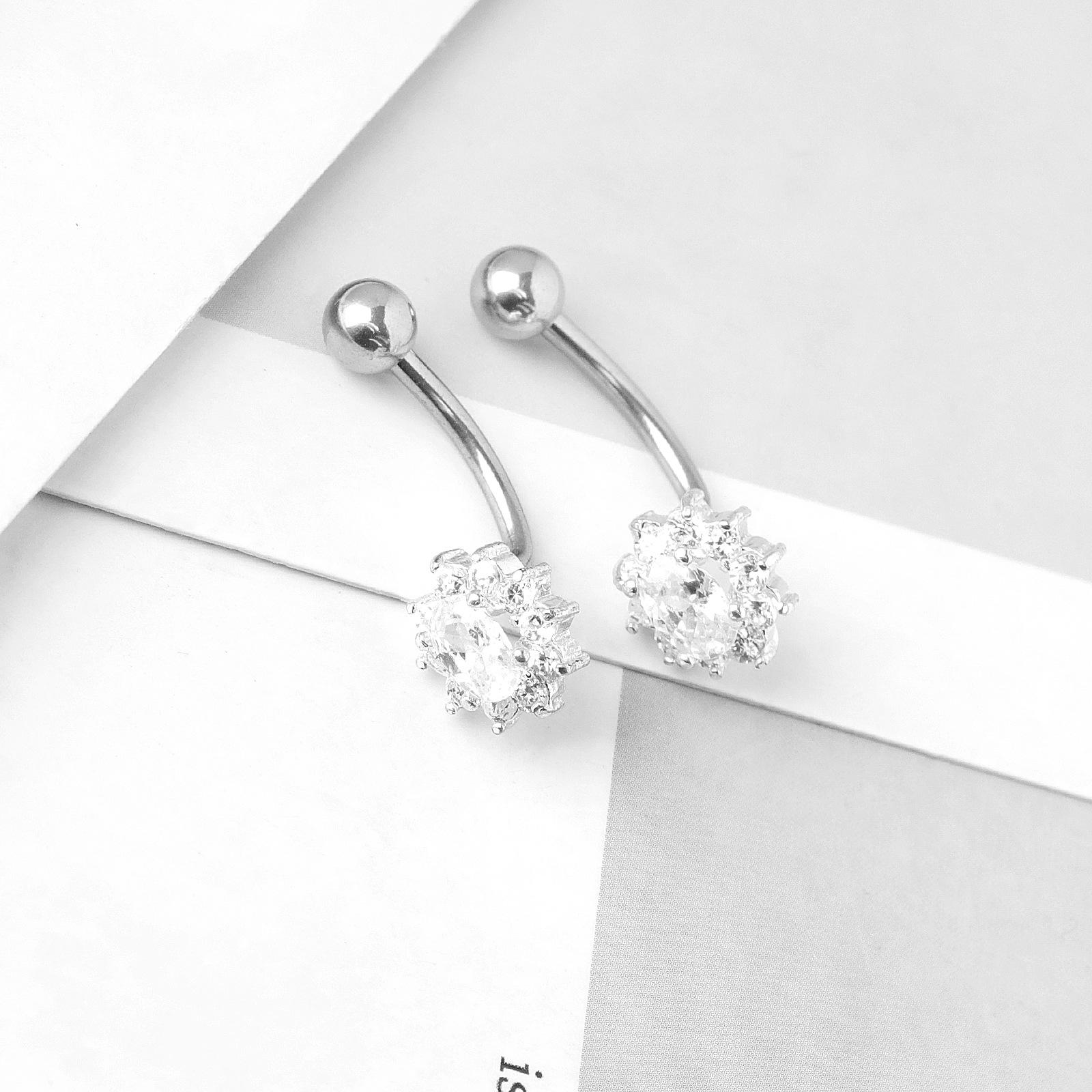 Anillo para el Ombligo de Moda de Circonia de Venta Caliente Transfronterizo Flor Simple Acero Inoxidable 316L Anillo para el Ombligo Joyería para Perforación del Ombligo