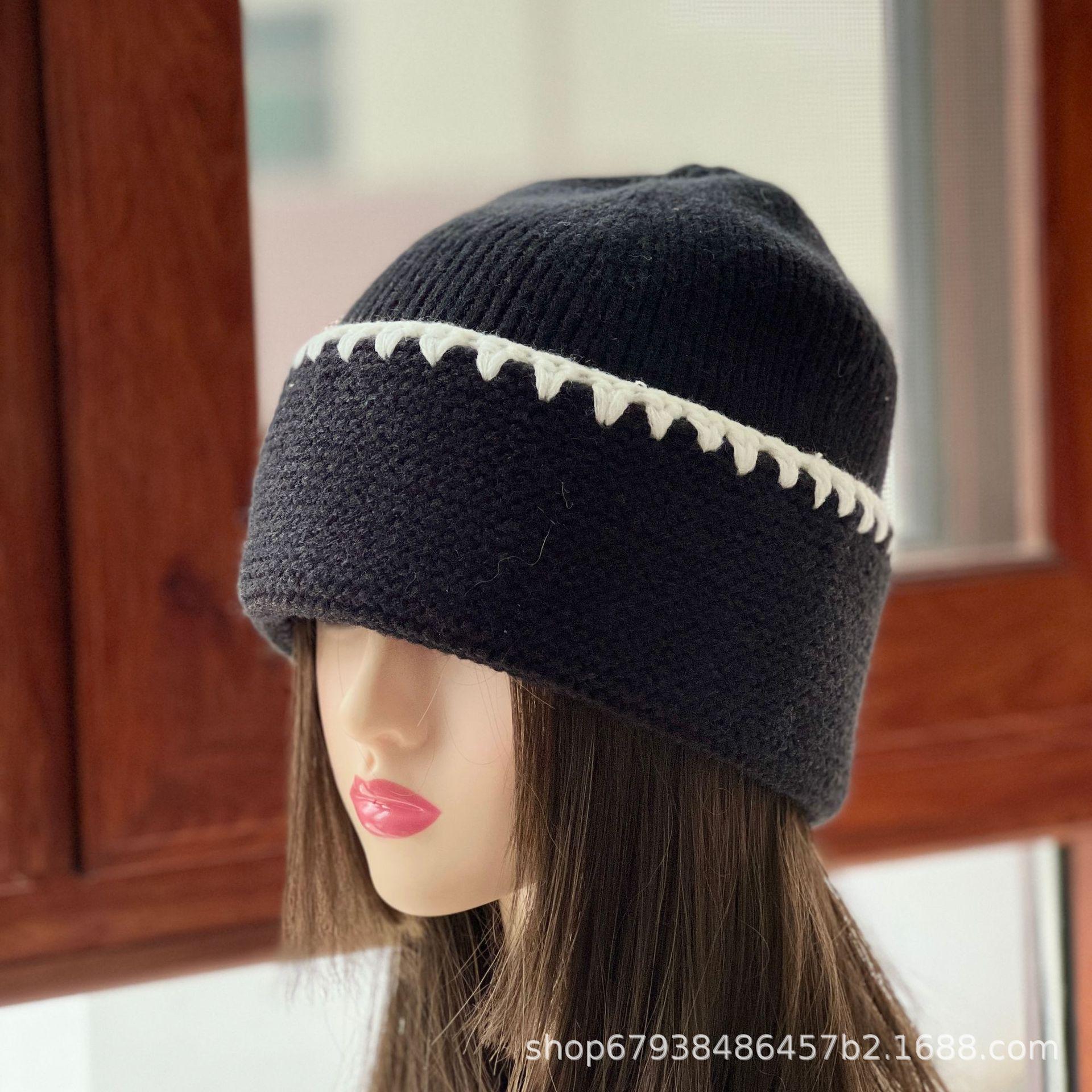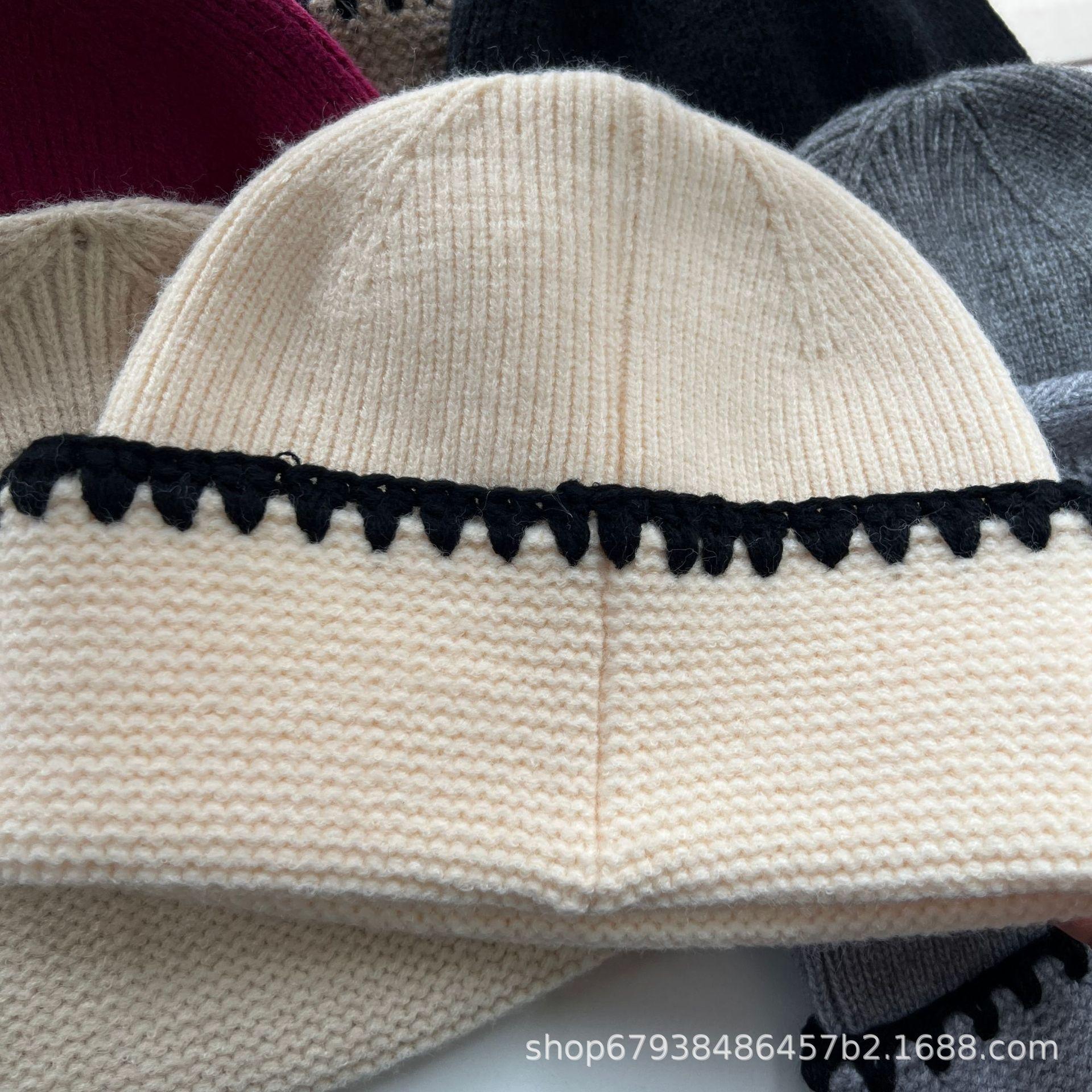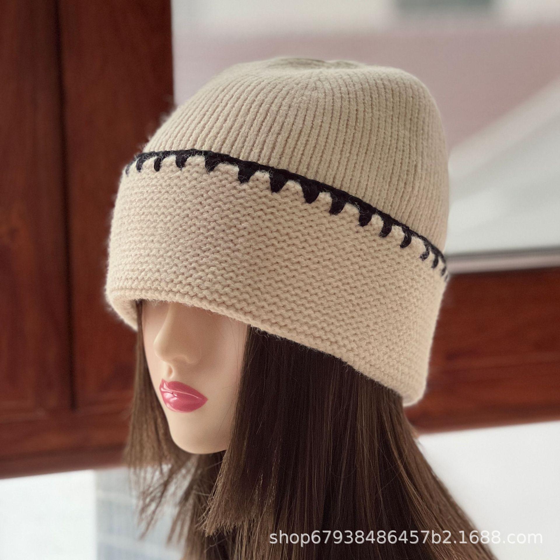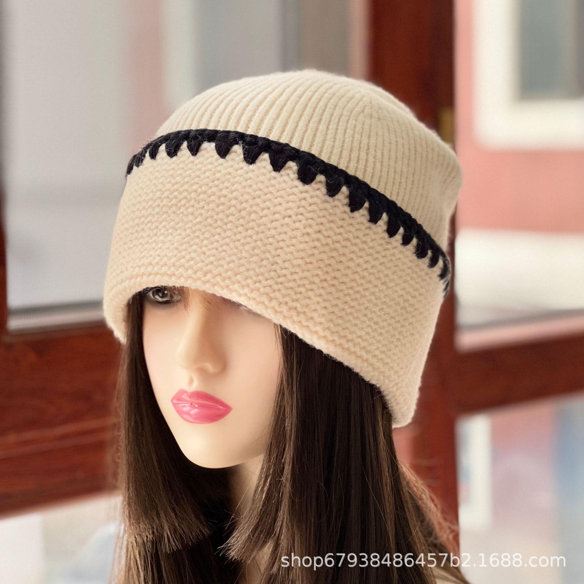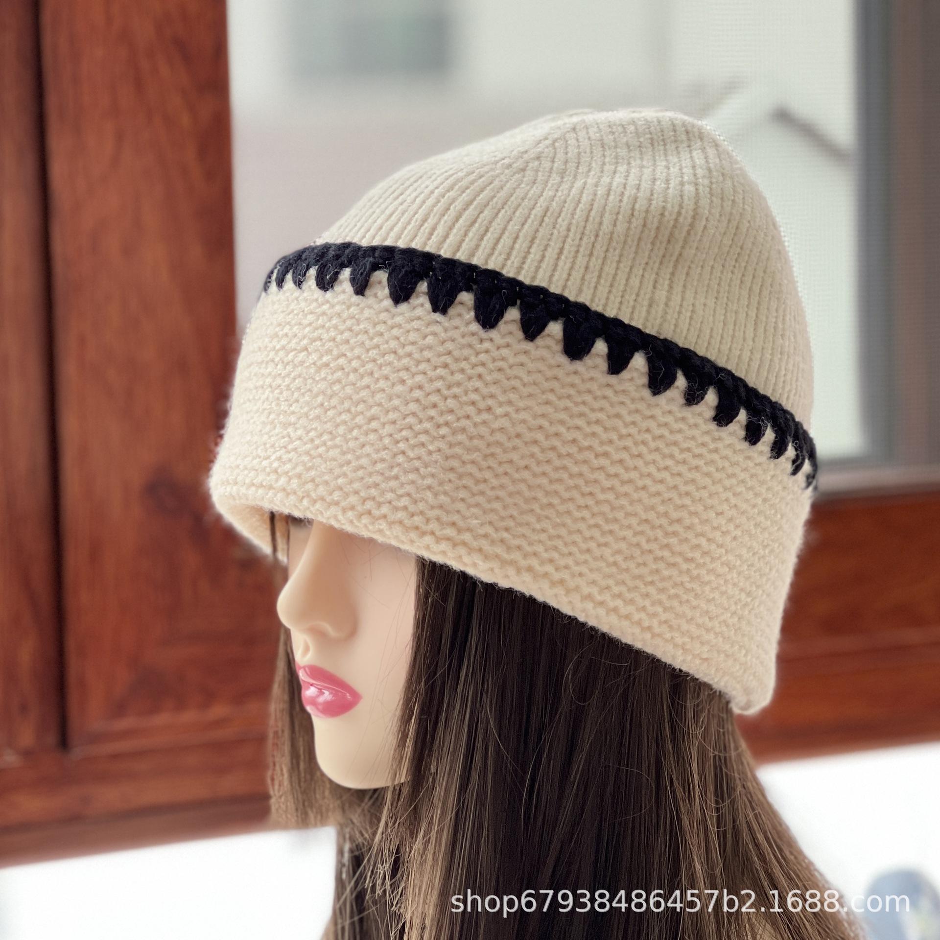 Otoño e invierno Nuevo gorro de punto para mujer, cálido color a juego, estilo Chanel, gorro de lana de moda para todo tipo de combinaciones, gorro para el frío, gorro tipo jersey con lana